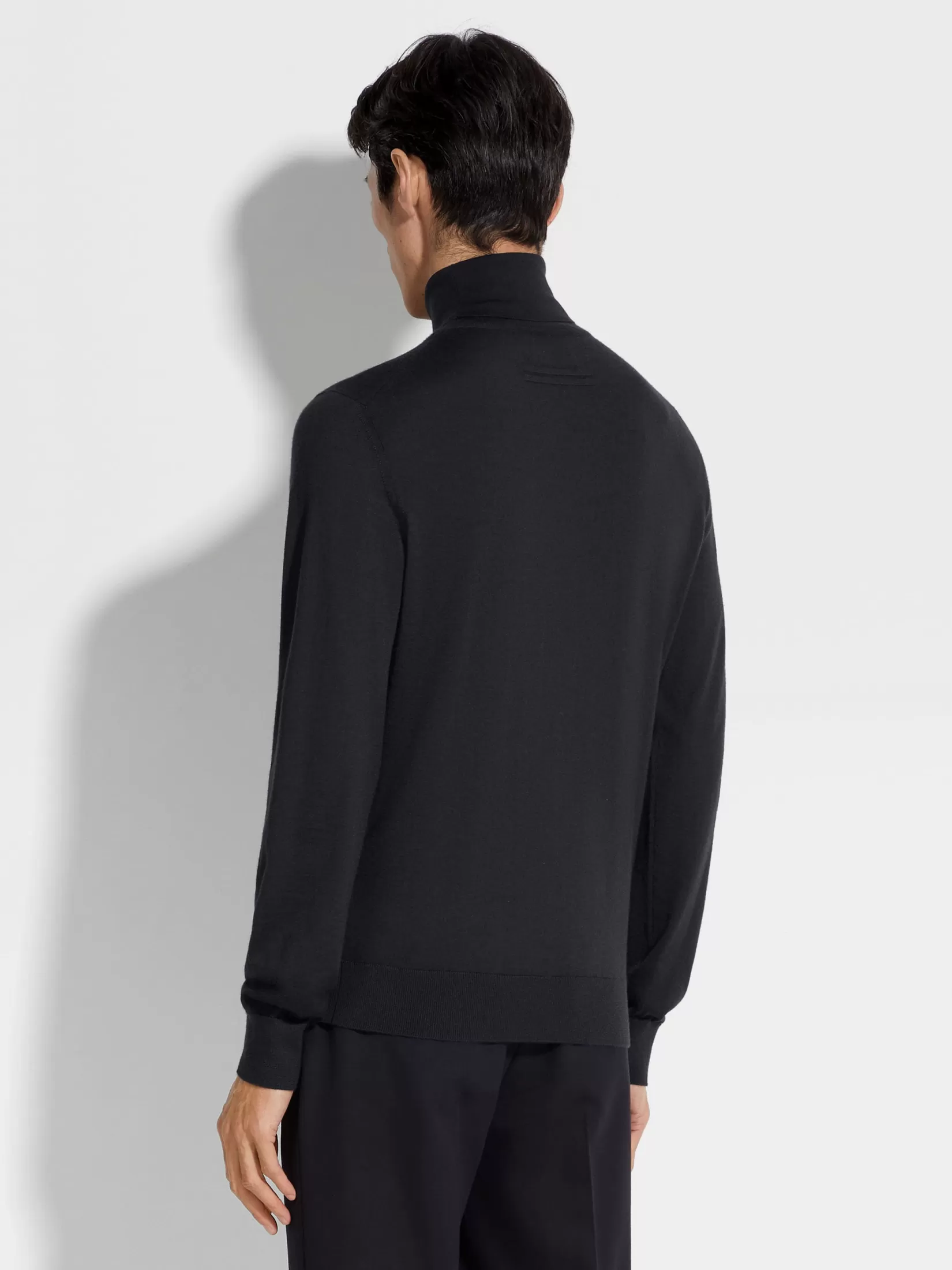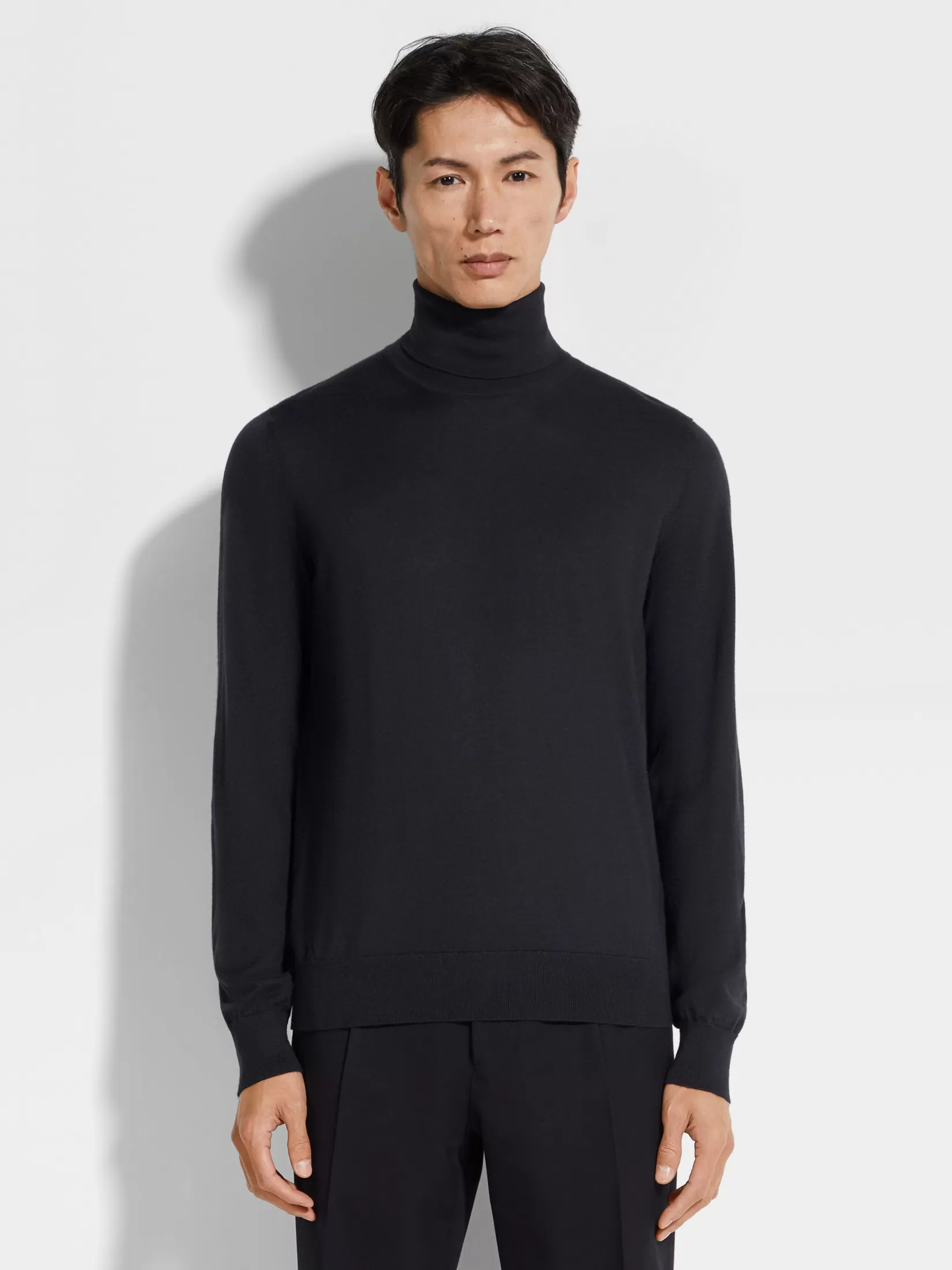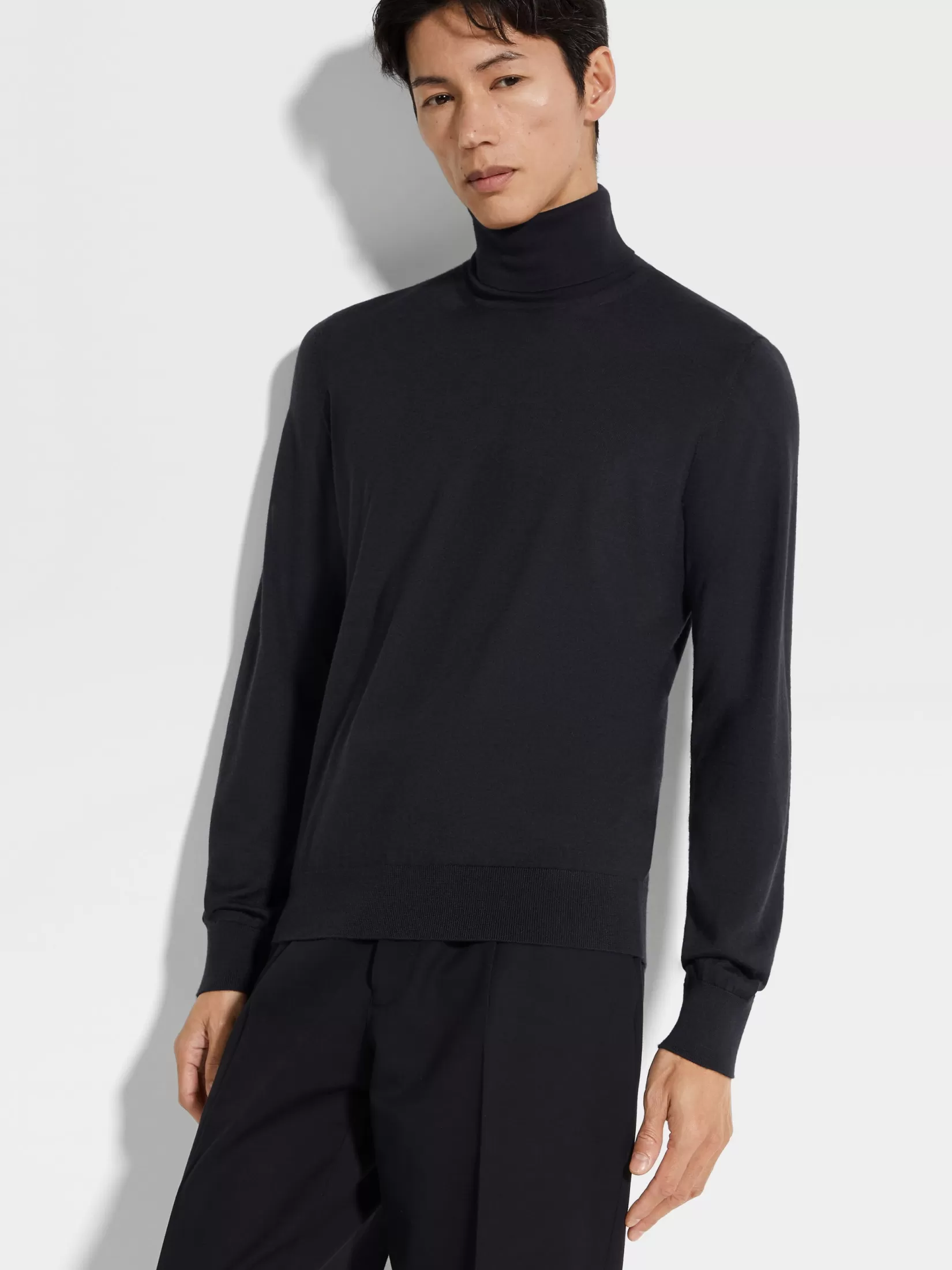La refinada y lujosa mezcla de cachemira y seda de Zegna, Cashseta, otorga a este jersey de cuello vuelto, azul marino mixto, un acabado distinguido. Este tejido especial se compone de hilo teñido, de modo que crea variaciones sutiles en cada prenda. Este jersey de cuello vuelto tiene unas líneas esbeltas que son ideales para un conjunto de ropa sofisticado.