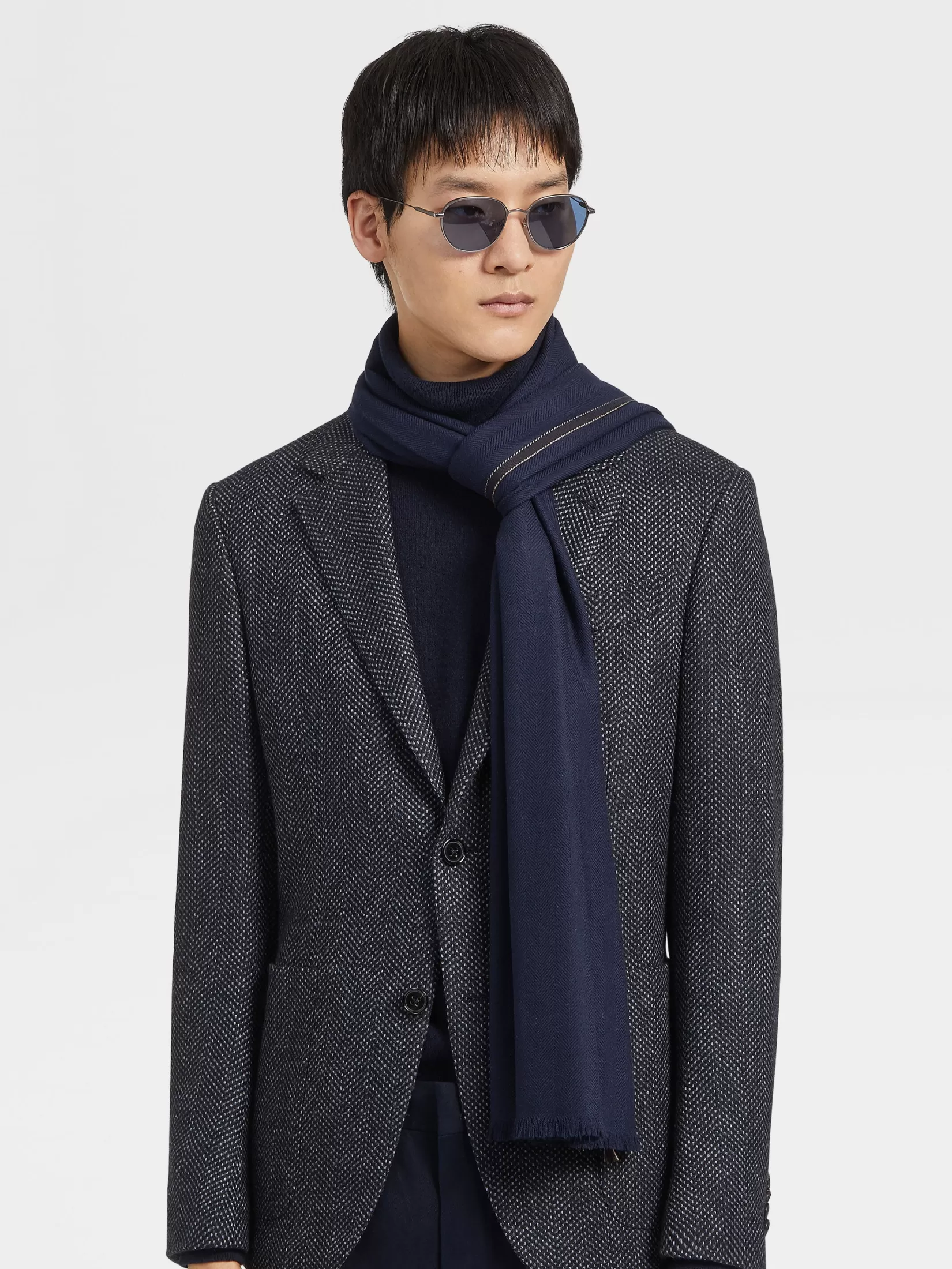 Confeccionada con uno de los hilos más exclusivos de Zegna, las fibras ultrafinas de la bufanda de lana 12milmil12 azul oscuro le aportan un tacto lujosamente sedoso. Esta bufanda básica es una prenda clásica de fondo de todo armario elegante.