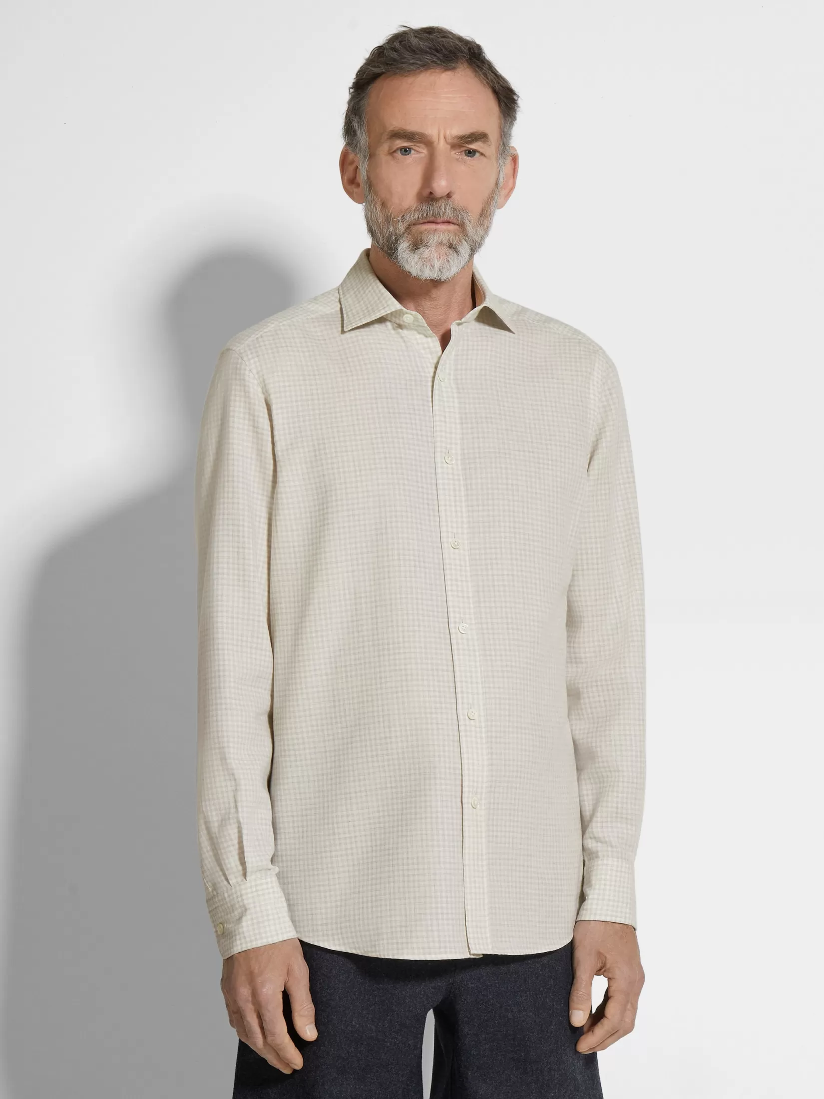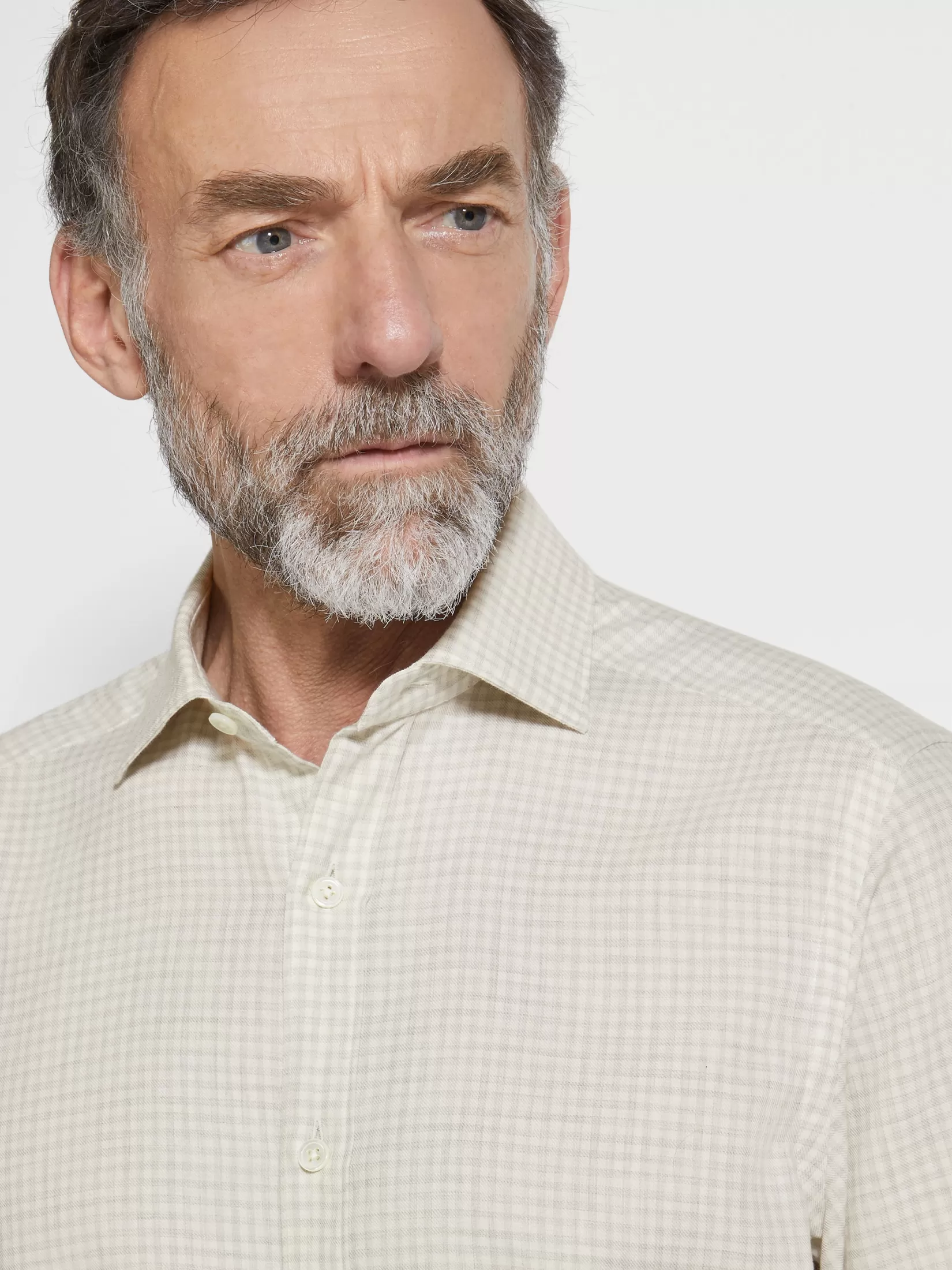 Esta camisa en Cashco, gris claro y oscuro con cuadros pequeños, está confeccionada con uno de los hilos más finos de Zegna. Destaca por el clásico patrón a cuadros pequeños en una elegante paleta de colores. Esta camisa de manga larga presenta cuello inglés y puños clásicos.