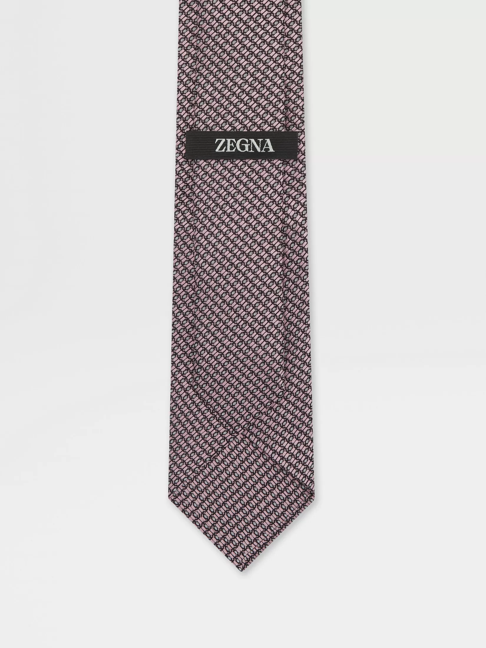 La corbata rosa de seda está confeccionada en seda Mulberry pura. El brillo natural de este tejido hace resalta el patrón intricado.