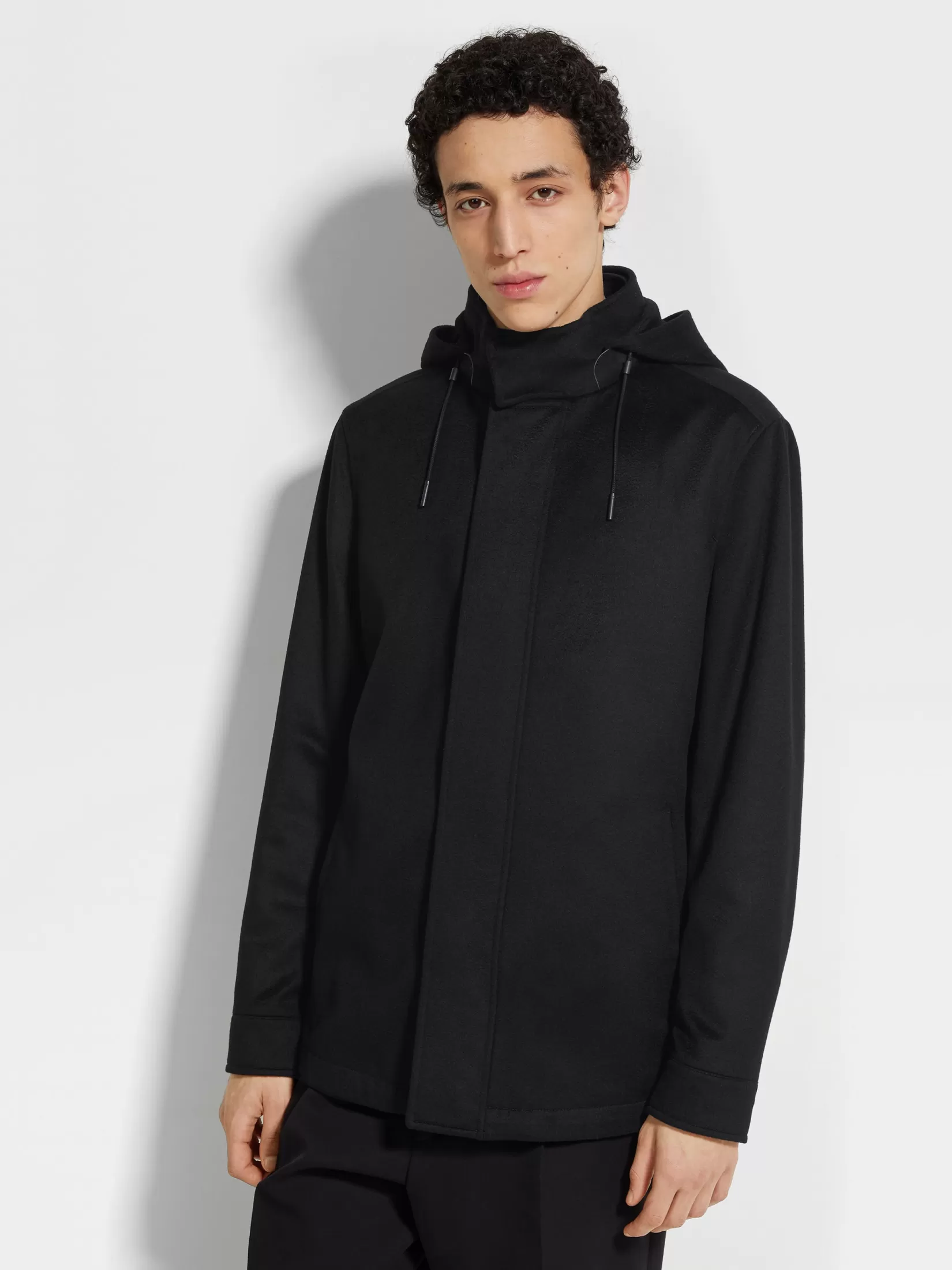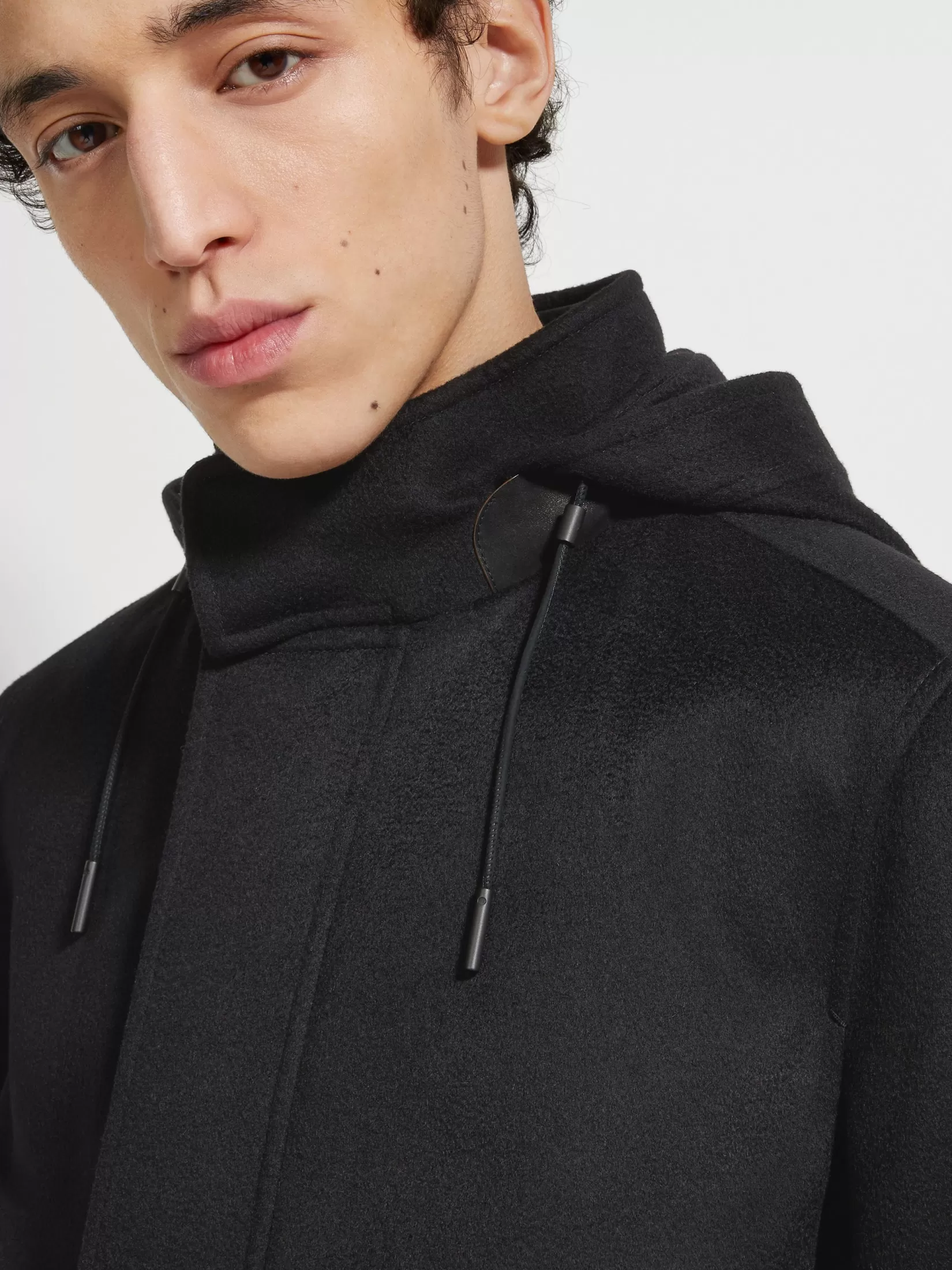 El sobretodo Cima en negro está confeccionado con el innovador tejido de Zegna, Oasi Cashmere Elements, que se compone de cachemira exclusiva y una membrana impermeable, por lo que resiste al clima inclemente. Su acabado suave le regala un estilo elegante y listo para sus aventuras. El cuello mao con capucha, los bolsillos ribeteados y los detalles en piel complementan su esbelto diseño.