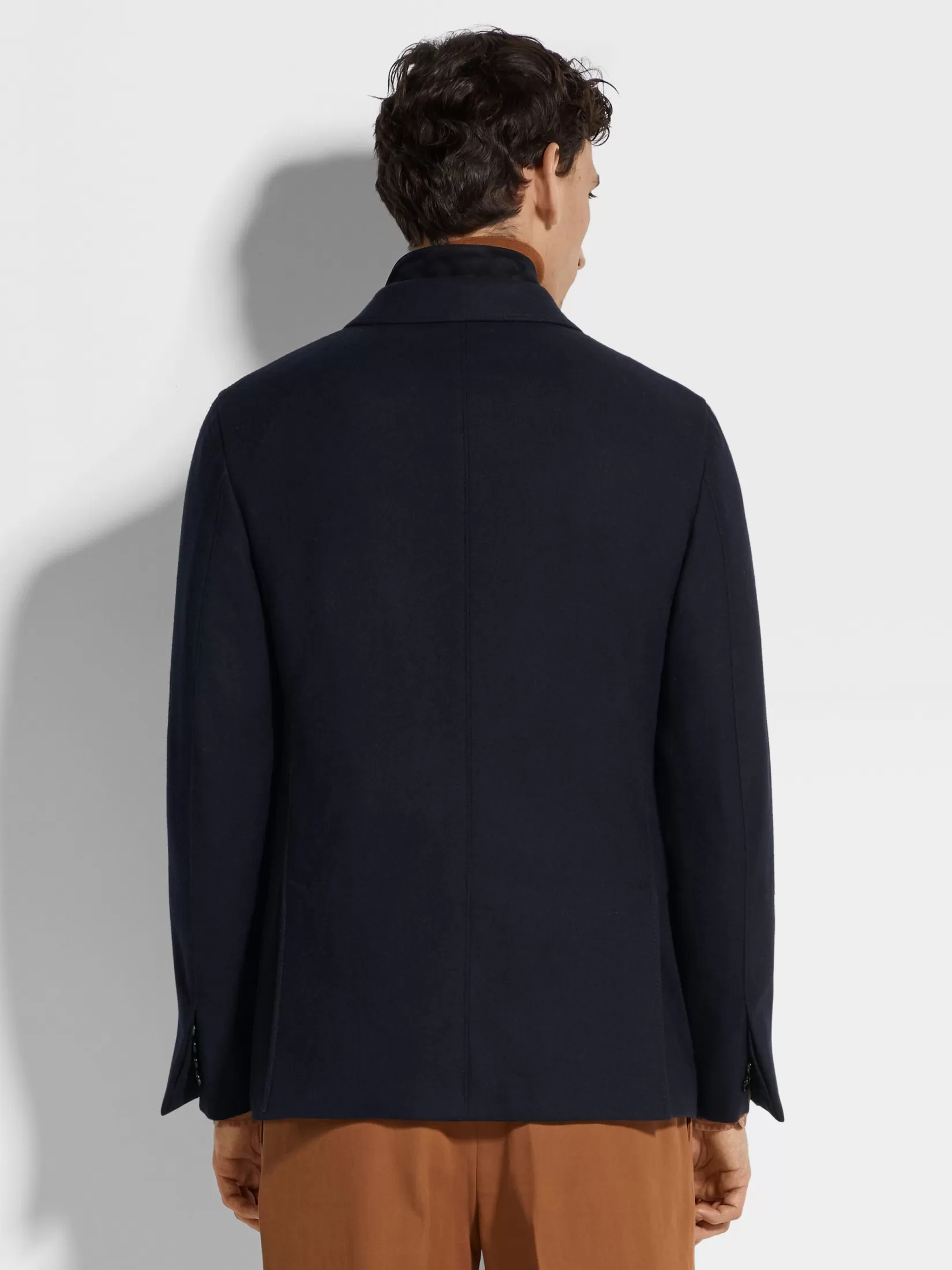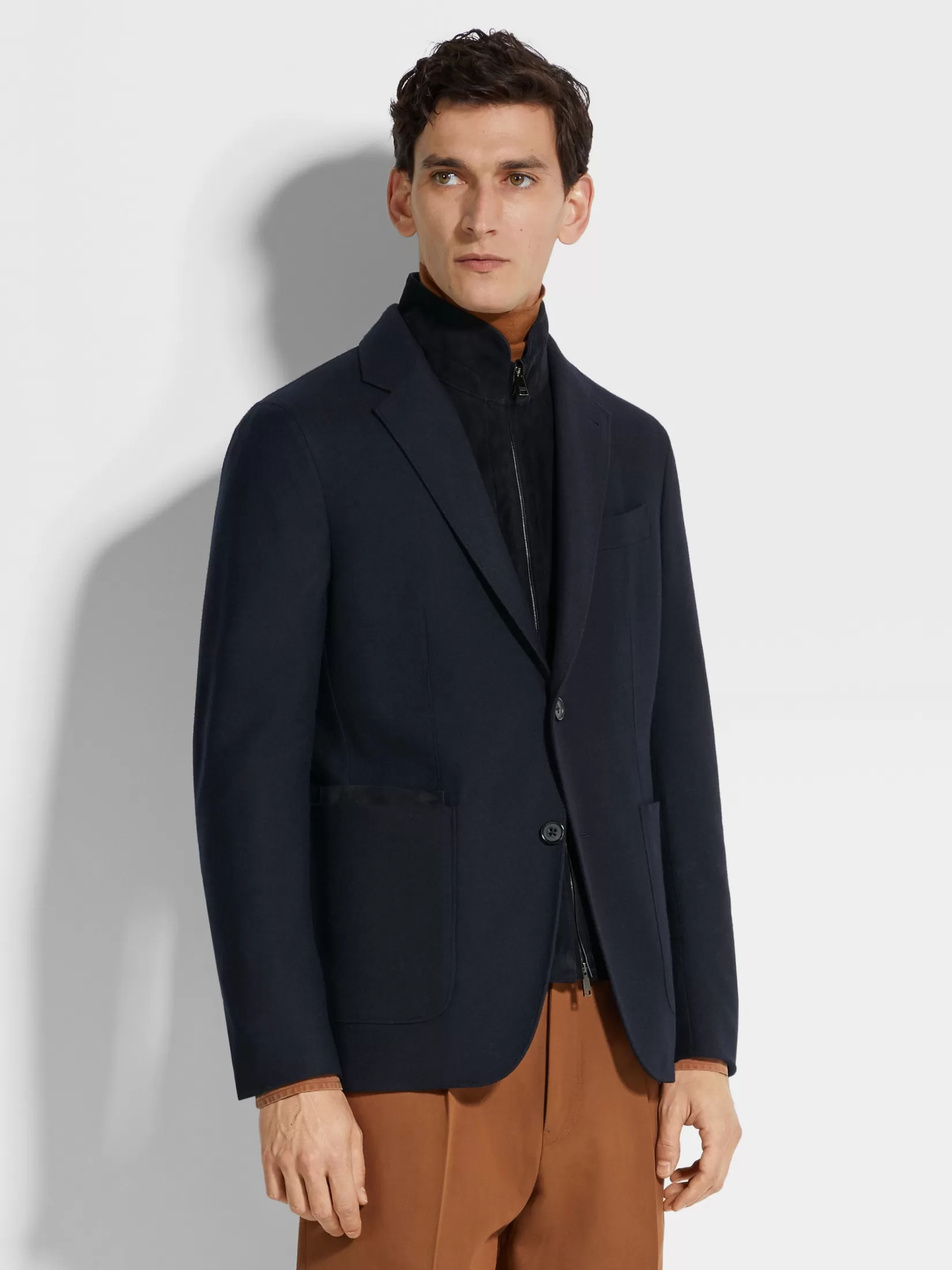 La lana merino australiana, propiedad de Zegna, brilla en esta chaqueta azul marino, confeccionada en Trofeo™ Cashmere. Sus fibras extralarga y resistentes se mezclan con una pizca de cachemira para conseguir un resultado más suave y brillante. Esta versátil chaqueta está acabada con un corte entallado, bolsillos de parche y una pechera removible.
