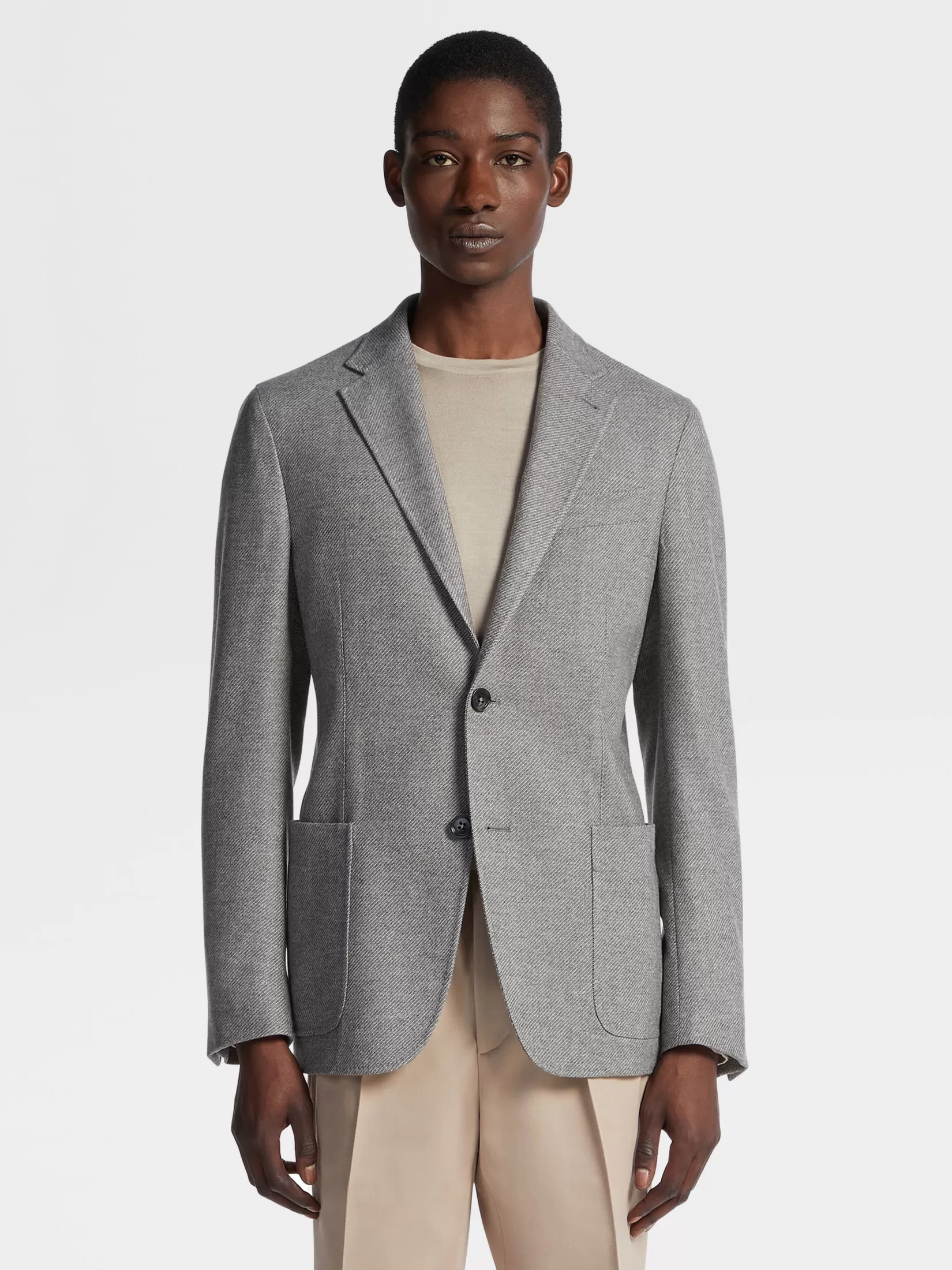 Esta chaqueta camisera gris mixto está confeccionada con Trofeo™ Cashmere para darle un acabado suave y liso, que se combina con propiedades elásticas para hacerla más resistente. Esta chaqueta, informal pero elegante, está acabada con solapas y bolsillos de parche. Los detalles de piel contrastan con su suave confección.