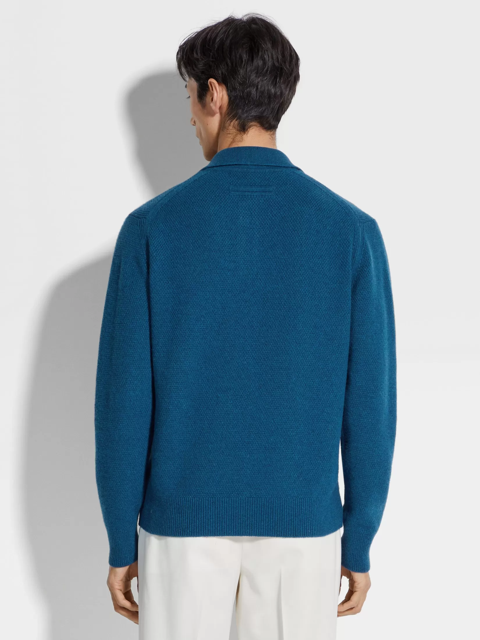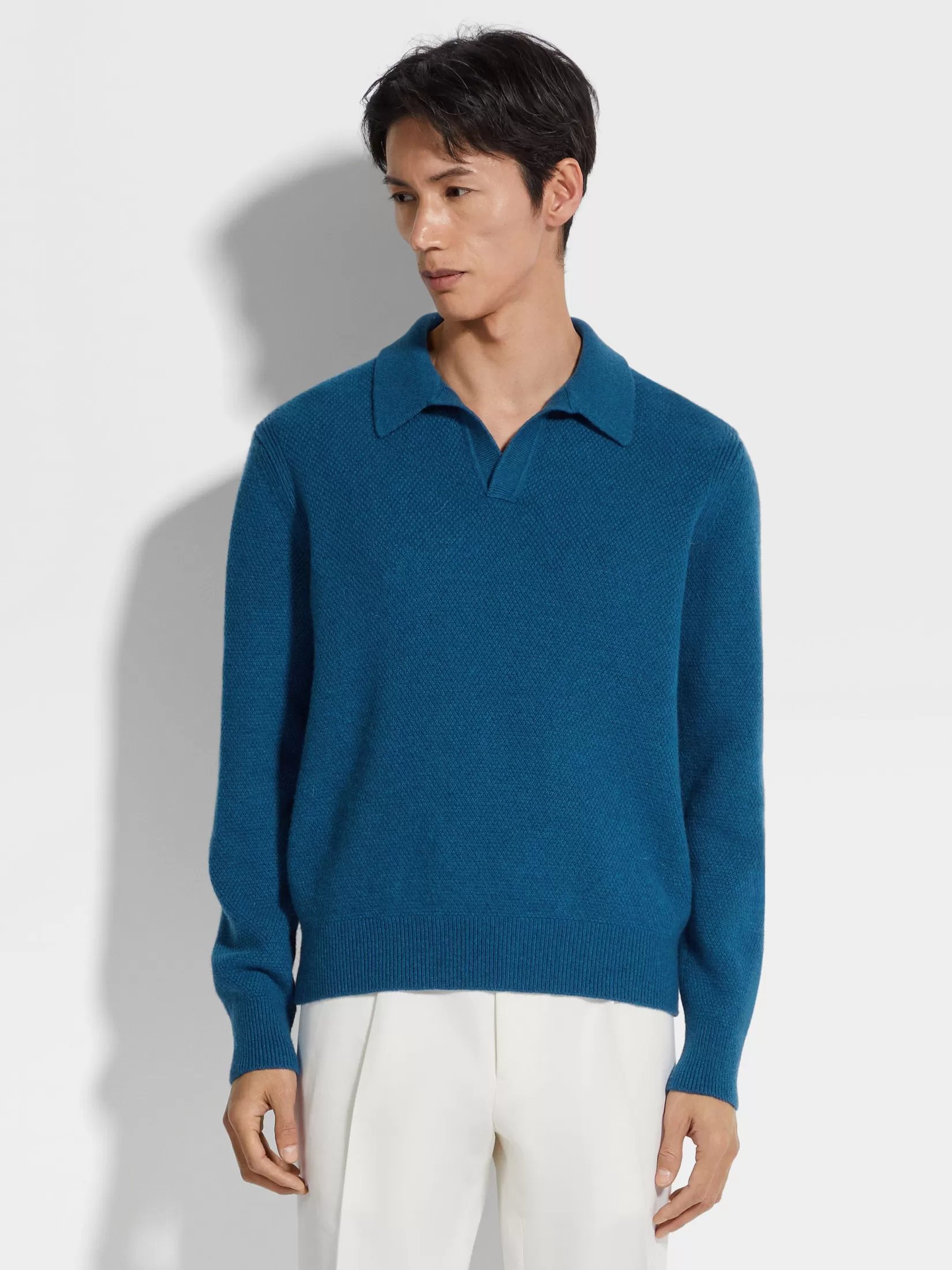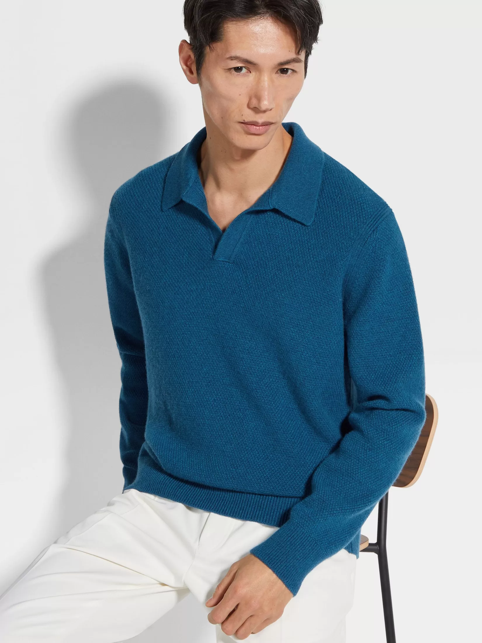 Las fibras de cachemira superfinas se complementan con el verde azulado brillante jaspeado de este polo en Oasi Cashmere. Este polo de manga larga se alinea con la visión del lujo informal de la marca a través del cuello de polo abierto. Los bordes acanalados acaban el diseño.