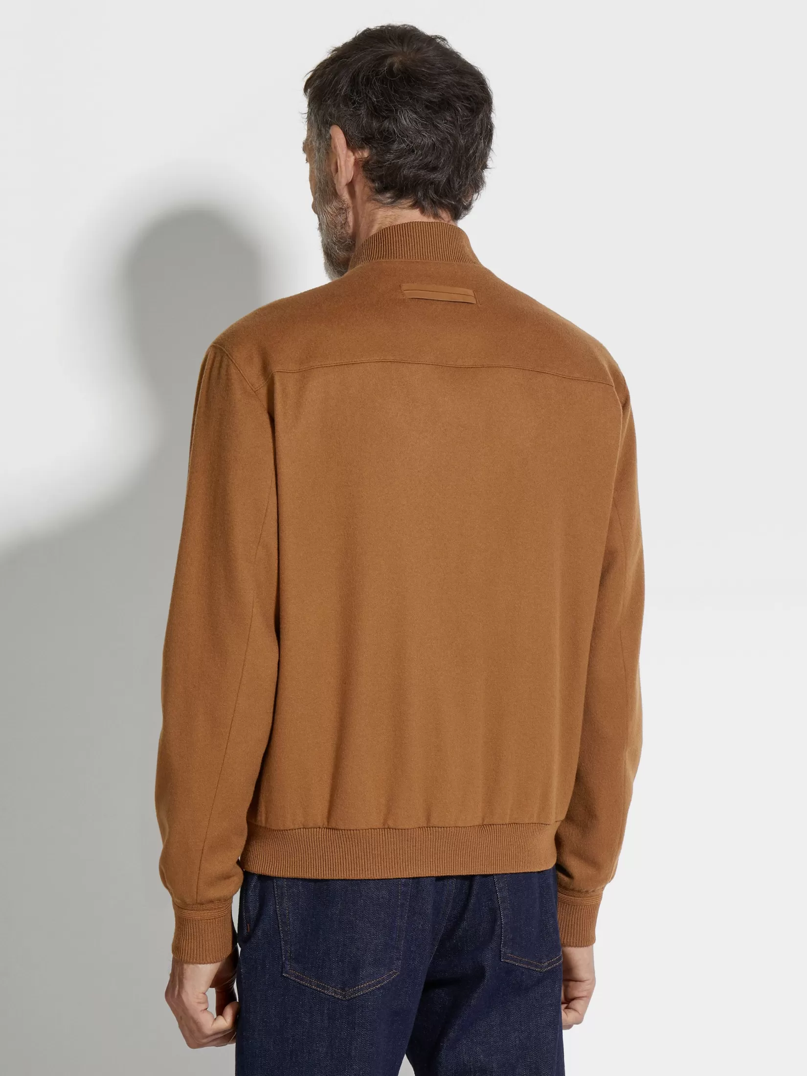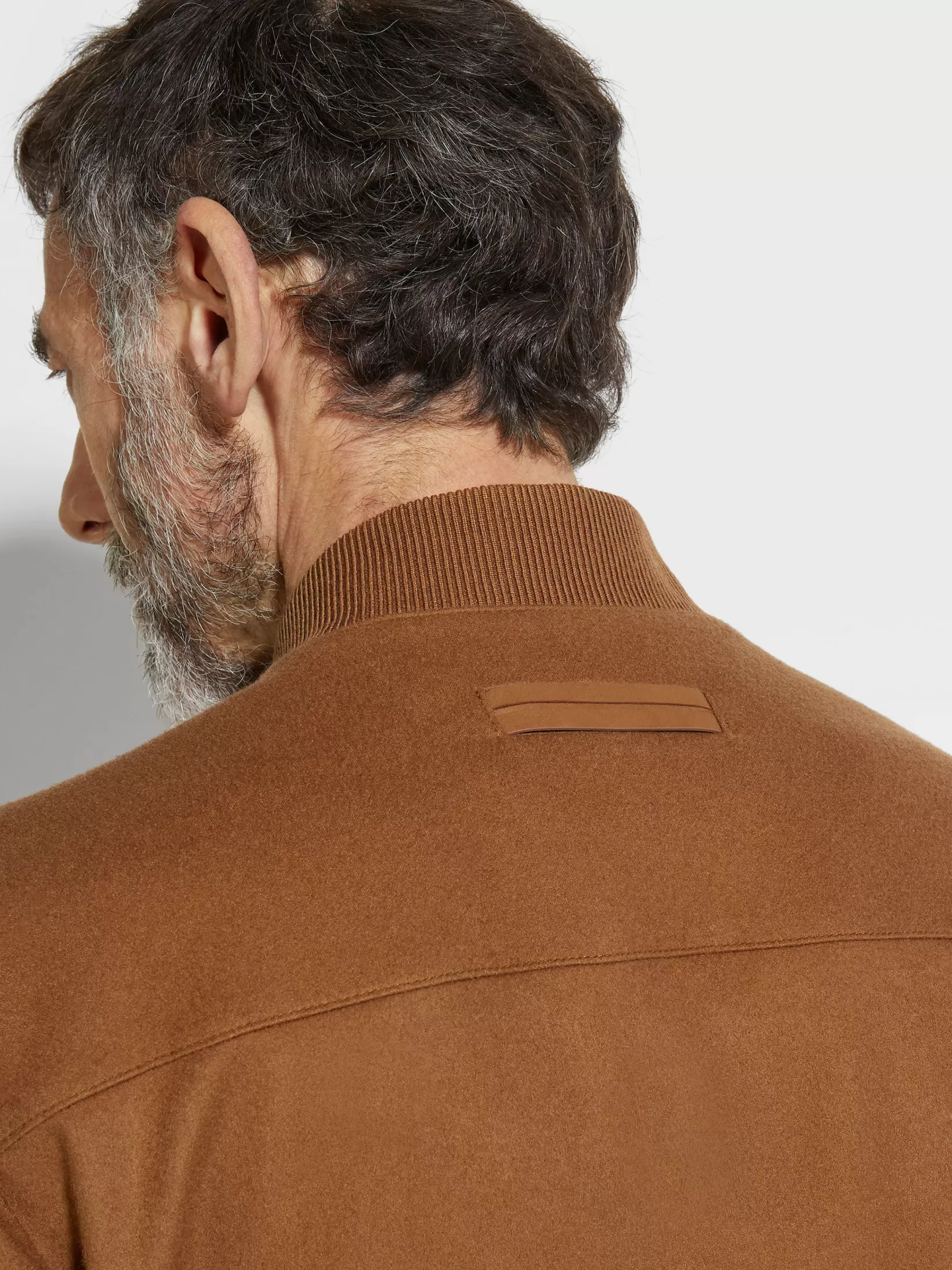 Esta chaqueta bómber en Foliage oscuro presenta una ligera capa de fieltro y un acabado en relieve gracias a la cachemira extrafina Oasi Cashmere Elements, exclusiva de Zegna. La chaqueta tiene una membrana impermeable que preserva sus cualidades a la vez que le protege mejor. Su diseño deportivo está acabado con un cuello tipo bómber acanalado y los puños a juego.
