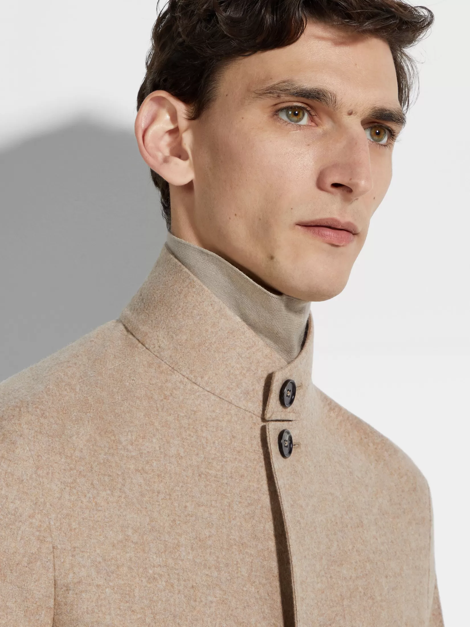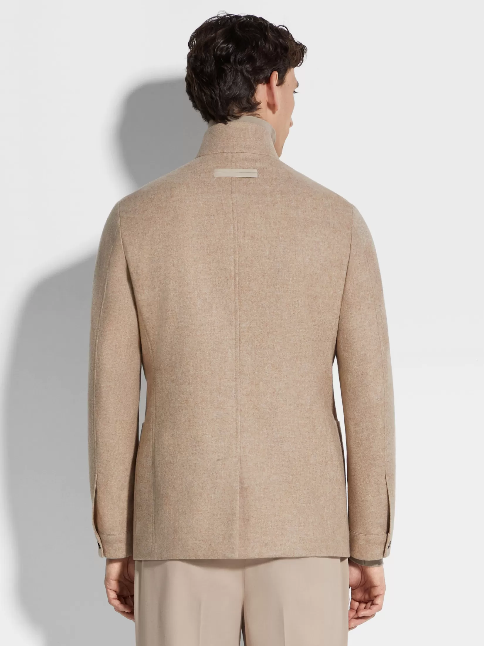 La chaqueta Chore Il Conte gris pardo claro jaspeado está confeccionada con fibras de cachemira selectas que dan forma al tejido Oasi Cashmere. Su diseño versátil y práctico está acabado con cuello mao. El minibolsillo de piel en la parte derecha y la insignia Zegna 232 Road Brand Mark de piel firman este modelo.