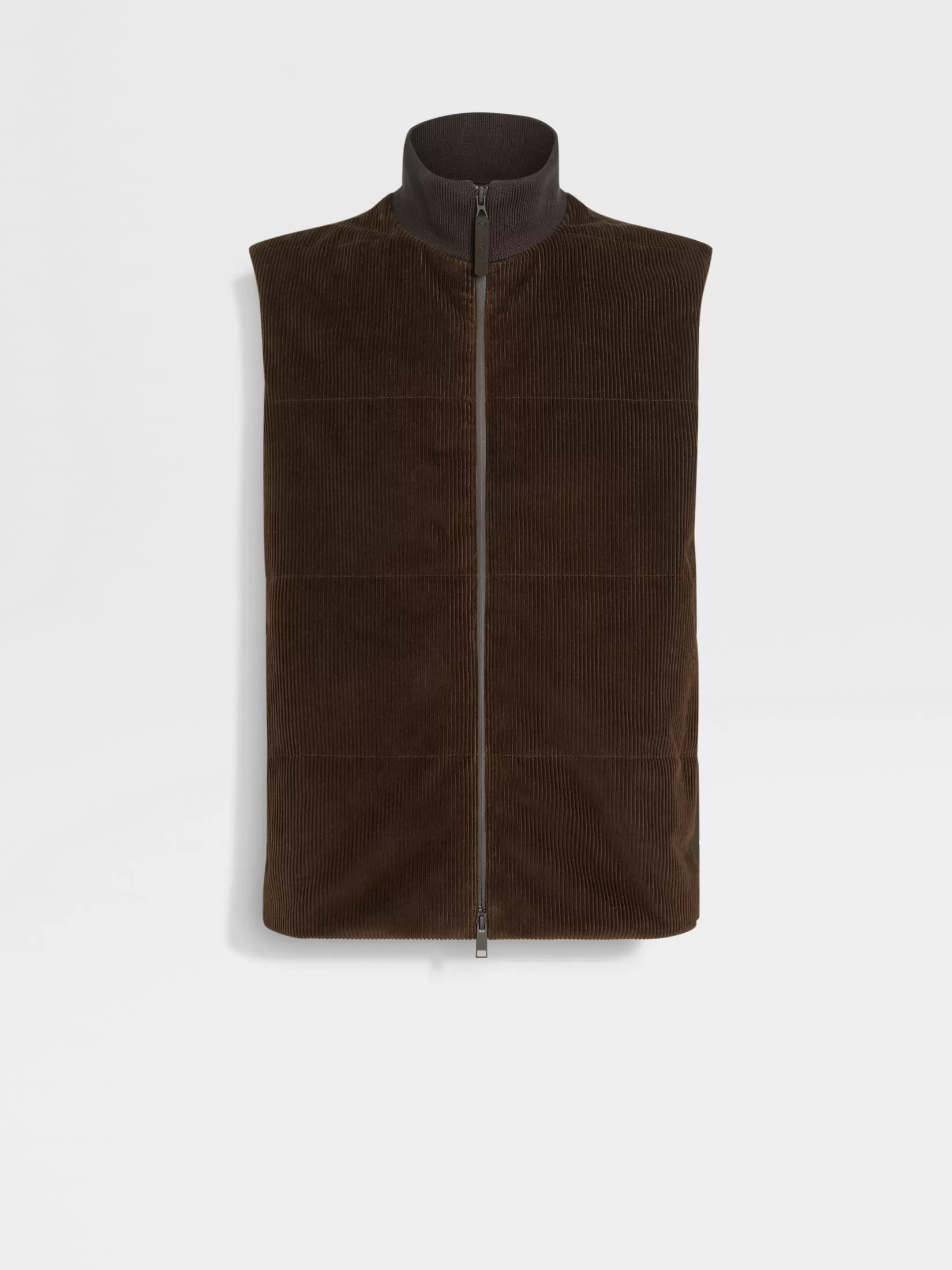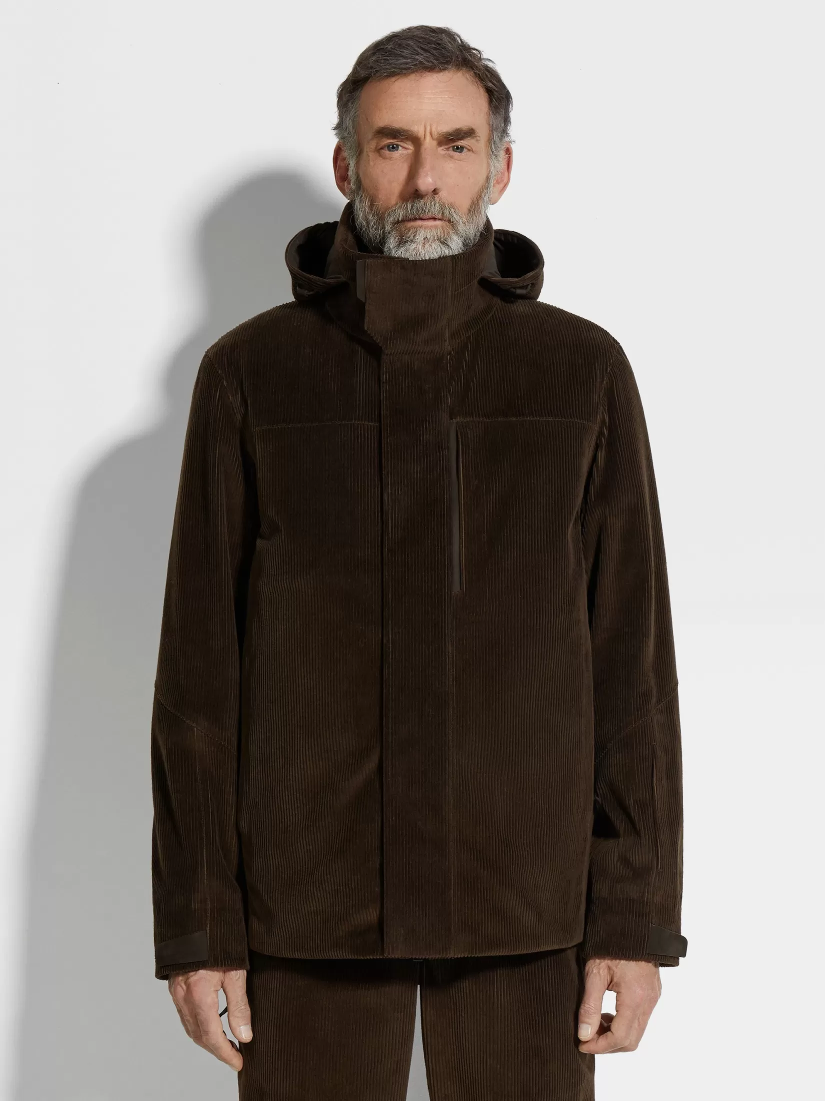 La mezcla de algodón y cachemira Cashco, de firma Zegna, regala a esta chaqueta de esquí marrón oscuro un acabado suave. Su diseño impermeable y resistente al viento se completa con un chaleco acolchado y separable, así como con una capucha y puños regulables con forro de punto. Los detalles de piel resaltan en los bolsillos y en los tiradores de la cremallera.