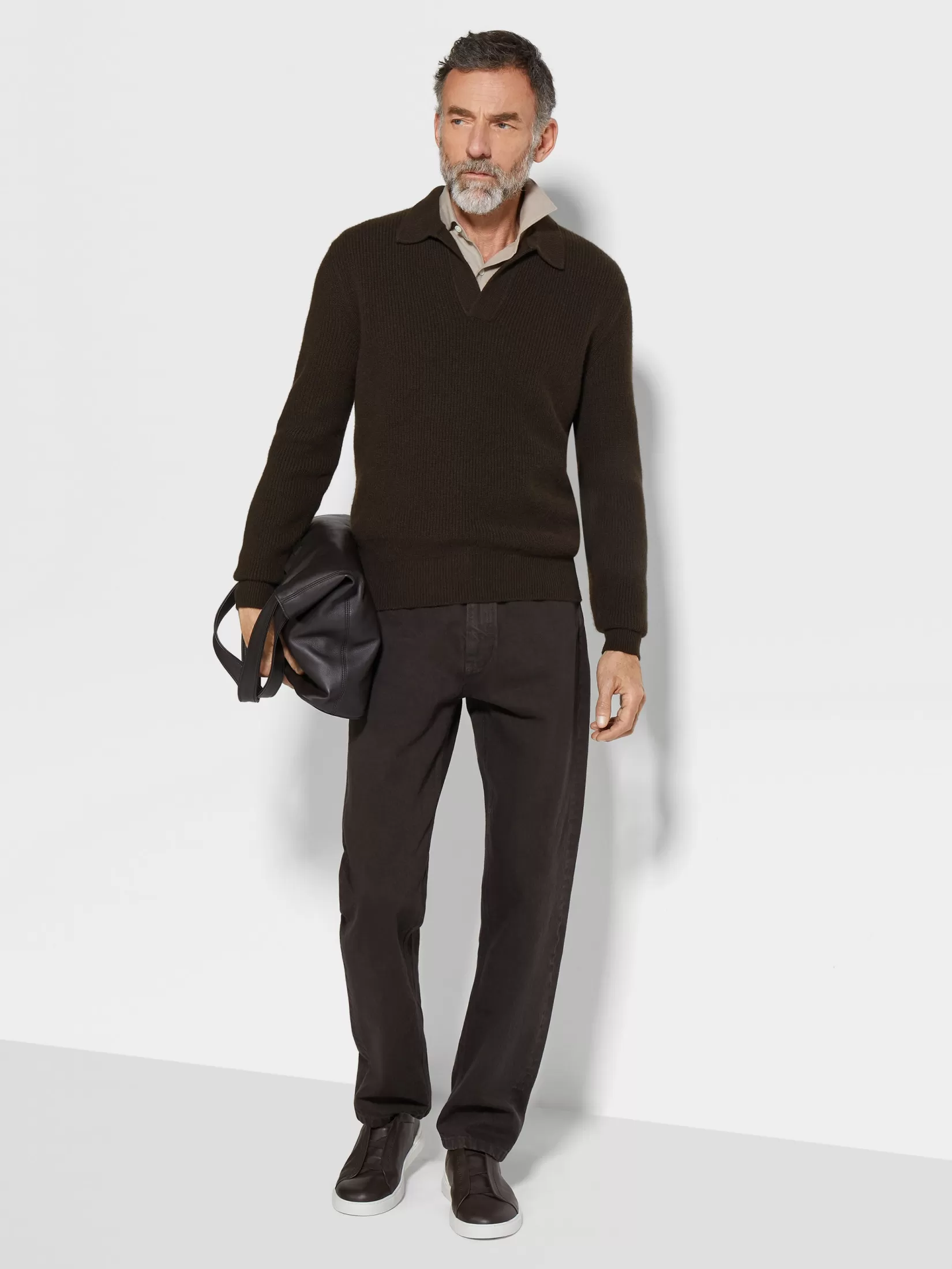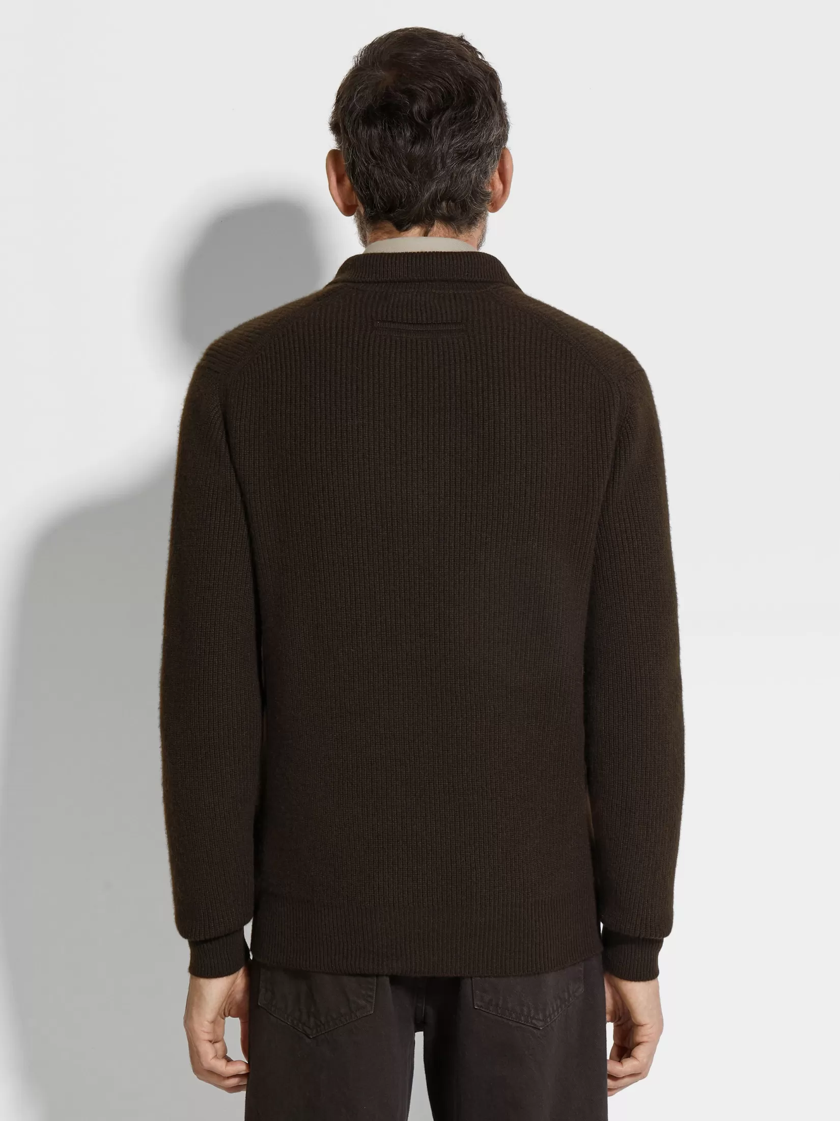Las fibras de cachemira superfinas se complementan con el color marrón oscuro jaspeado de este polo en Oasi Cashmere. Este polo de manga larga se alinea con la visión del lujo informal de la marca a través del cuello de polo abierto. Los bordes acanalados acaban el diseño.