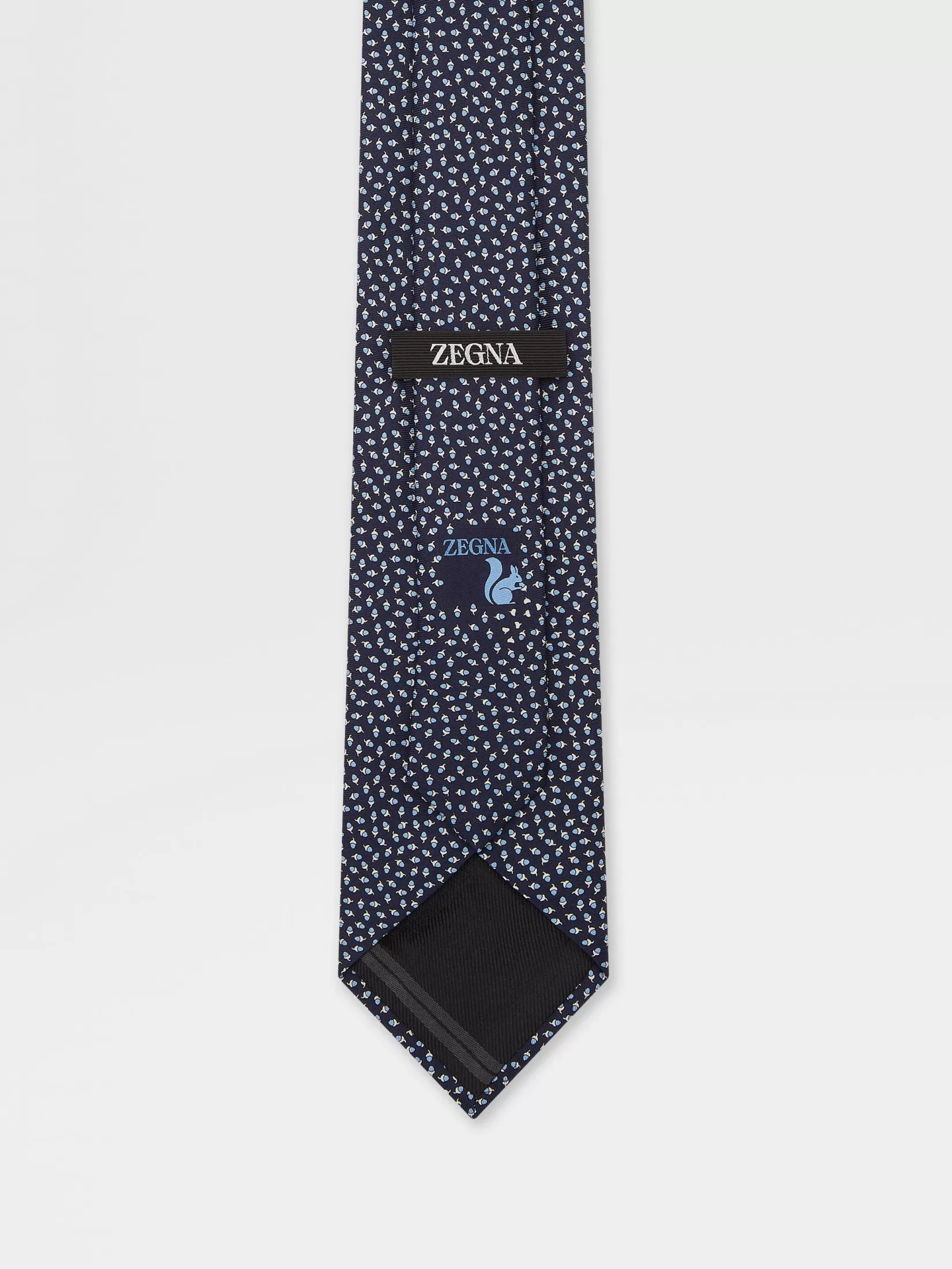 Resalte sus conjuntos elegantes con esta corbata azul oscuro en seda estampada. Presentada en una paleta de colores clásica, el brillo natural de la seda Mulberry es el fondo perfecto para su diseño de bellota.