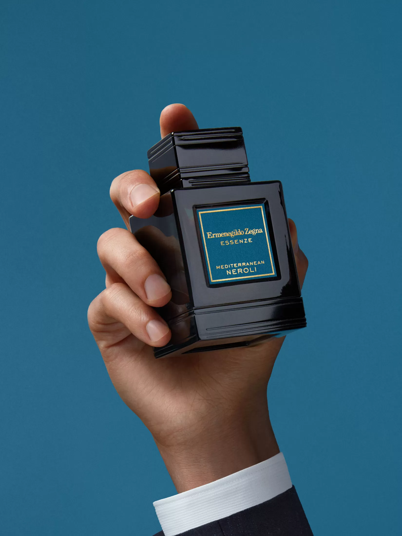 El envase de Zegna Essenze Eau de Parfum destila todo el poder y elegancia del diseño italiano moderno. Fabricado artesanalmente en suntuoso y contundente cristal ahumado, luce el clásico tapón magnético negro compensado con un profundo cuerpo. El cuerpo principal, de un azur que distingue su exótica y distintiva nota de fondo, incorpora un logotipo dorado con acabado metálico y discretos elementos gráficos, en un formato ideal para viajar.