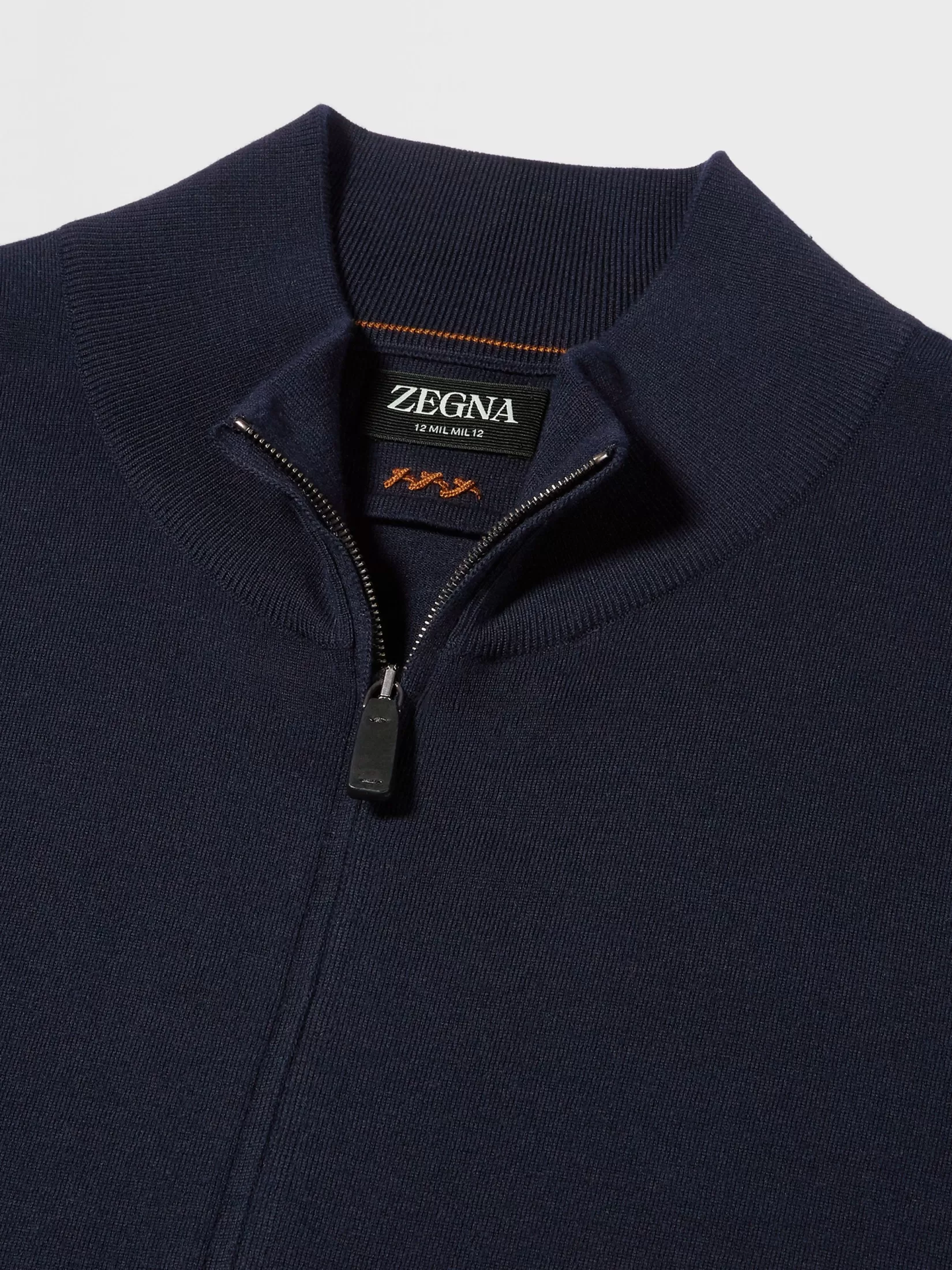 Este cárdigan deportivo, en punto, con cremallera completa y azul marino está confeccionado en 12milmil12, hecho con lana merino superfina que se produce en cantidades limitadas cada año. Este cárdigan con cremallera es una alternativa al jersey con botones y está acabado con un corte entallado para conseguir una silueta más estilizada. El cuello mao acanalado acaba su diseño.