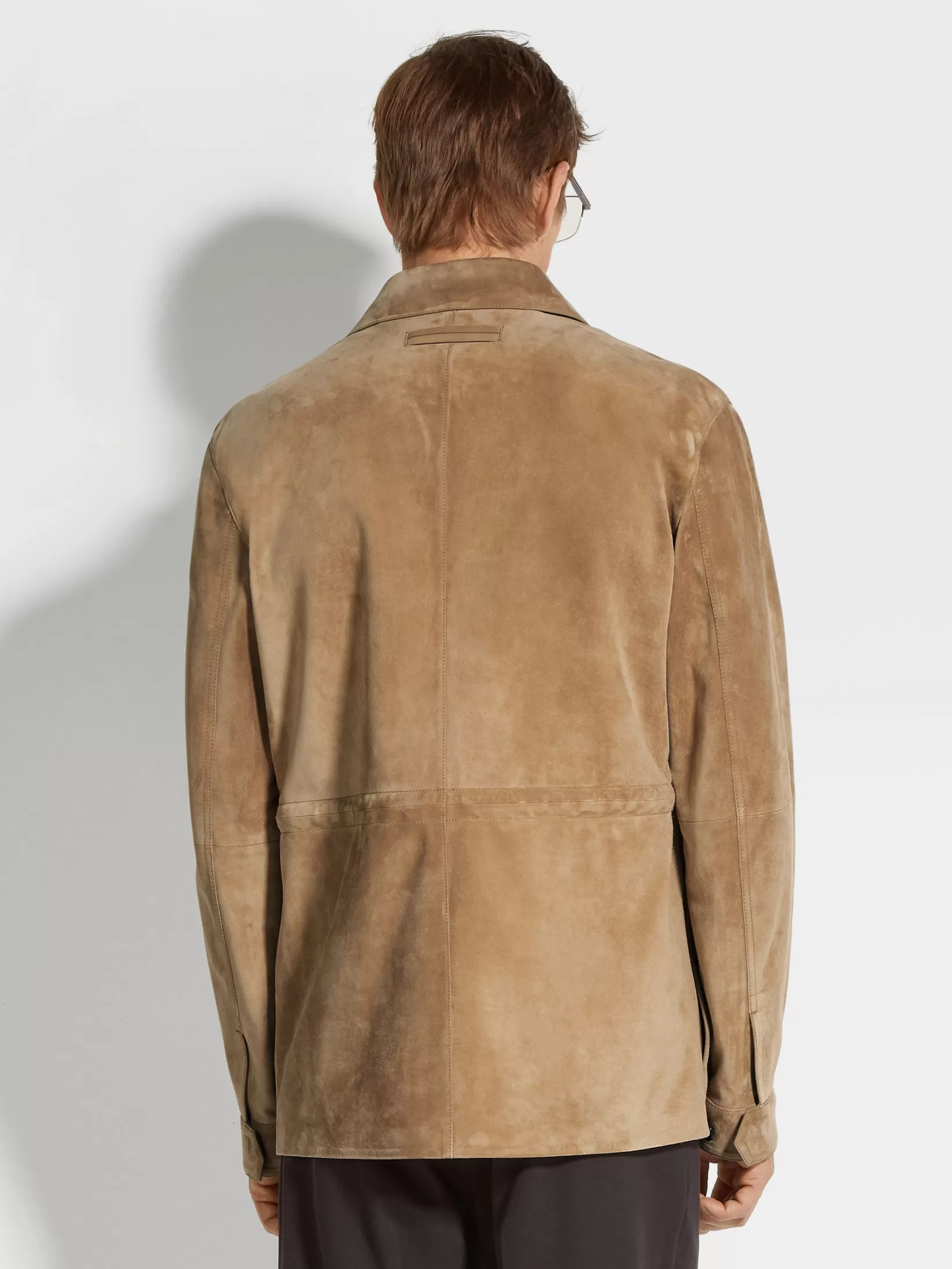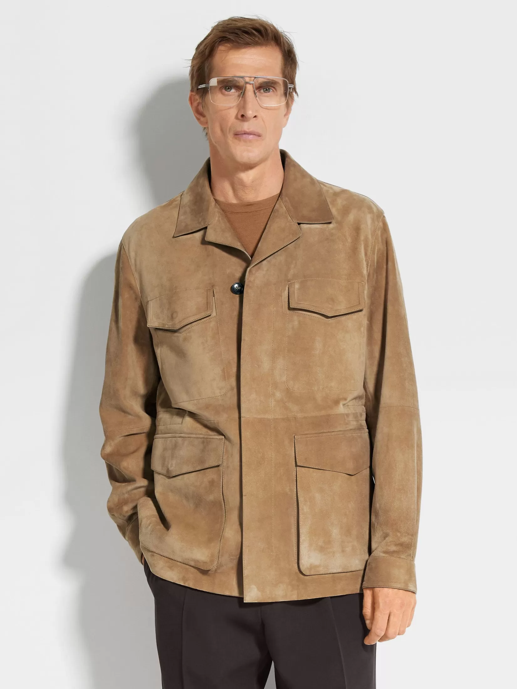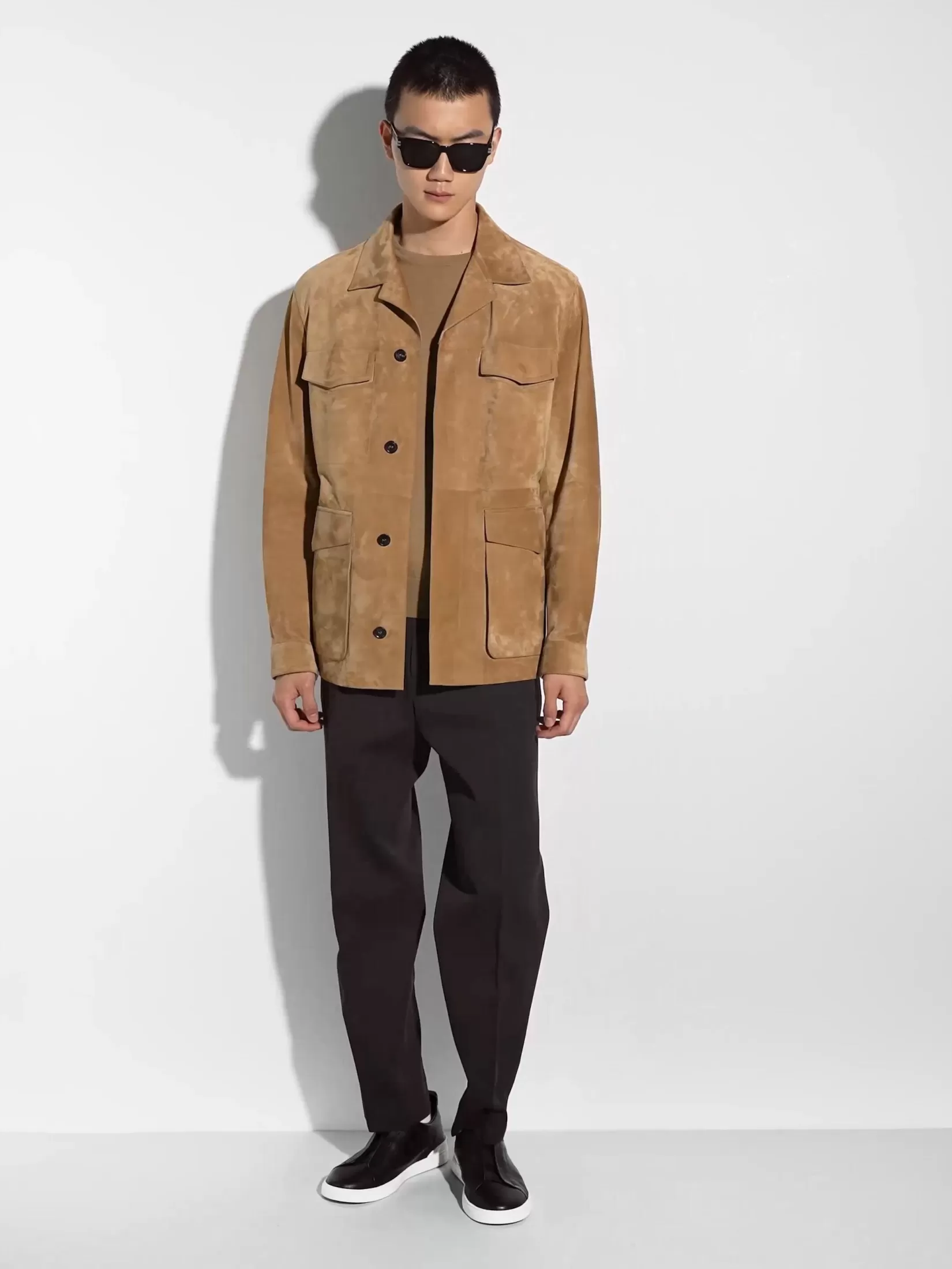 El preciado ante de piel de becerro regala a esta chaqueta de estilo militar y beige oscuro un acabado supersuave. Esta cazadora de piel está acabada con detalles icónicos del estilo militar: el cuello de camisa, los bolsillos de parche, bolsillos con solapa en el pectoral y puños regulables. Se abrocha con botones por delante.