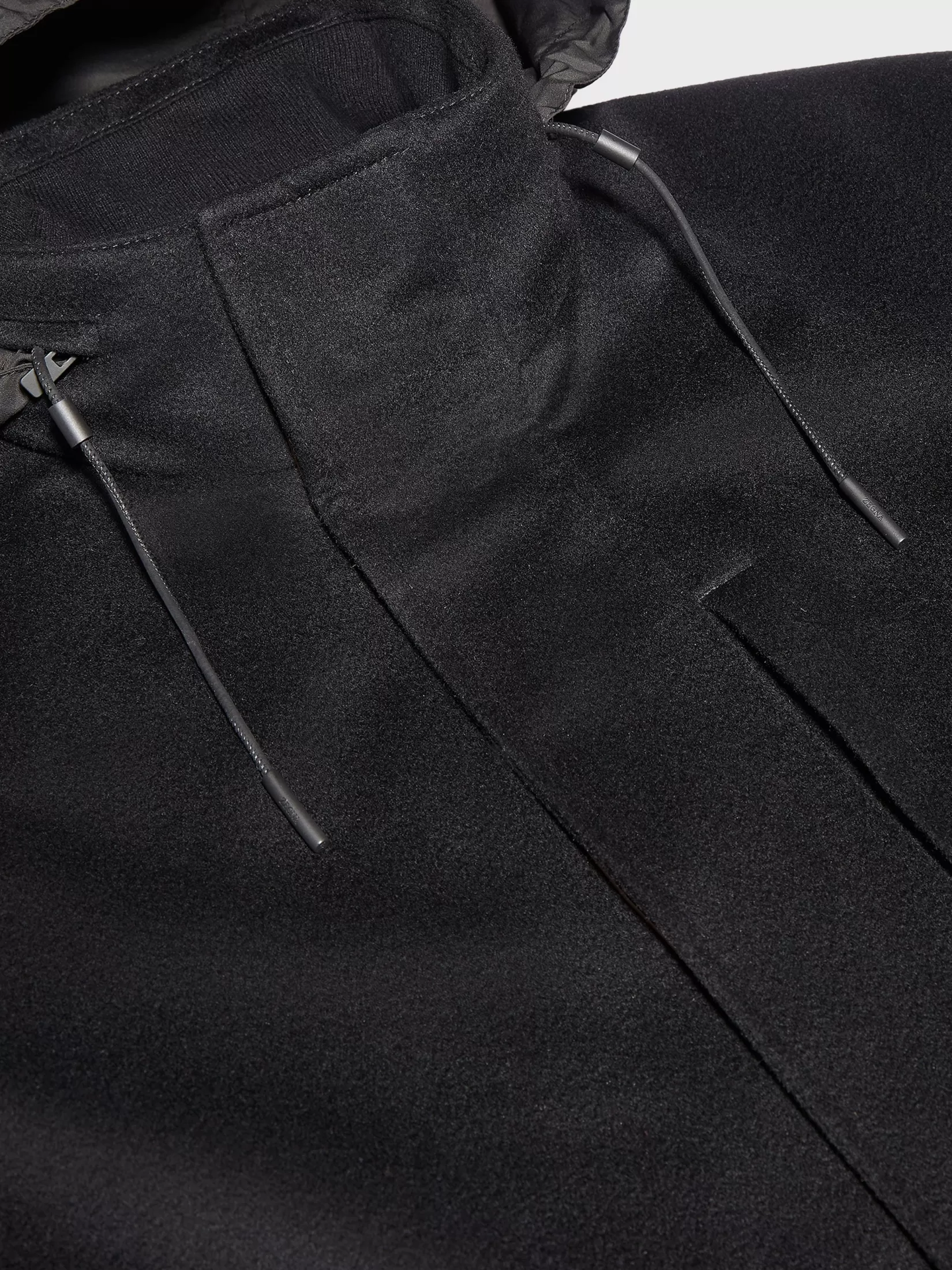 La chaqueta acolchada Vetta, color negro, está confeccionada con uno de los tejidos más finos de Zegna, Oasi Cashmere Elements, que combina la cachemira con unas líneas esbeltas y modernas. Las características prácticas del sobretodo Vetta le protegen del clima y su corte estructurado le regala un estilo elegante. Los detalles de piel acaban este modelo.