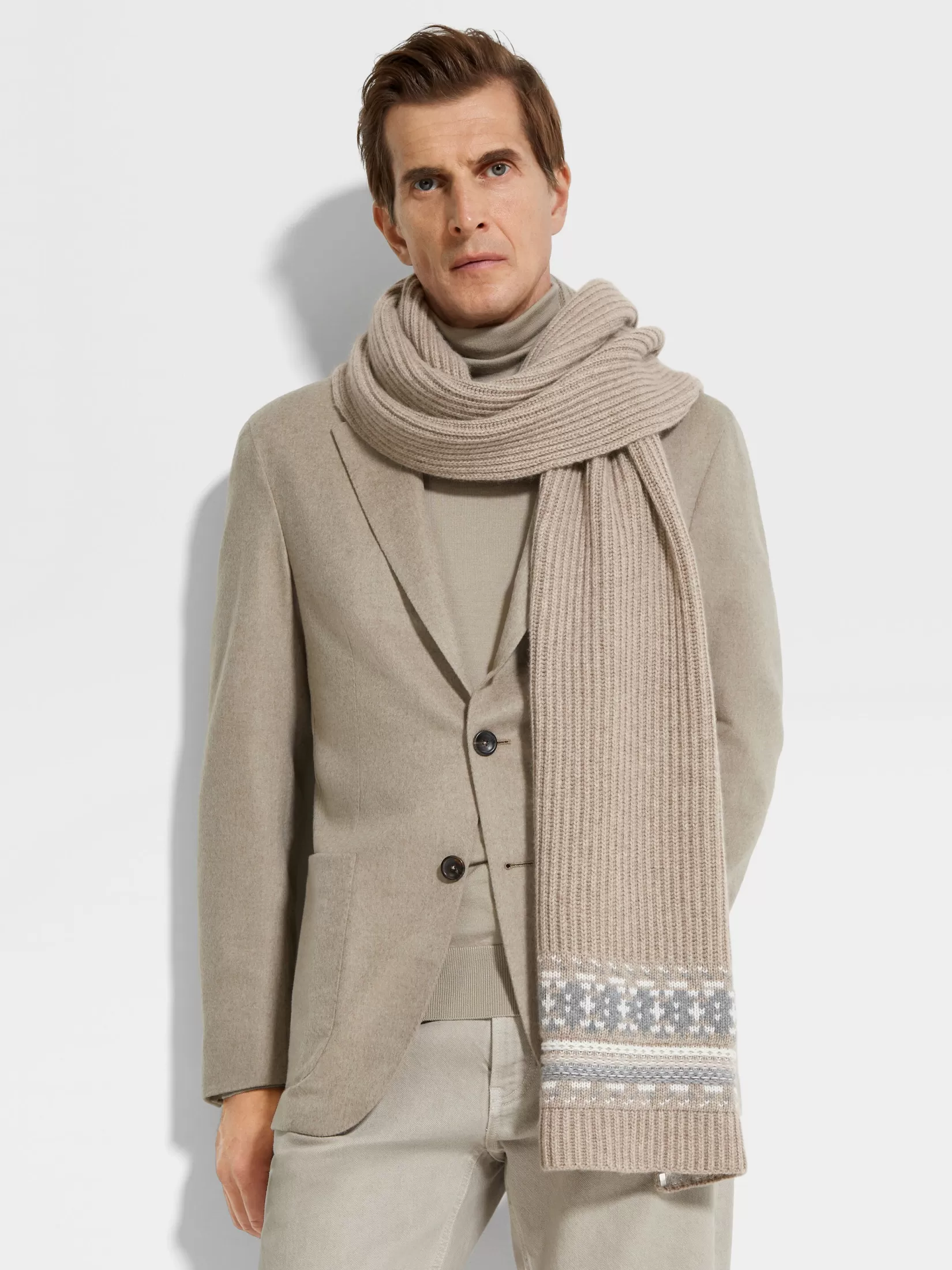 Los altos estándares de calidad de Zegna se extienden hasta a los accesorios más sencillos como esta bufanda gris pardo claro en Oasi Cashmere, confeccionada con uno de los tejidos más suaves y exclusivos de la marca. Esta lujosa bufanda de cachemira se realza por su elaboración en canalé ancho y está adornada con un bonito diseño en el lado corto. Este modelo está firmado con Zegna 232 Road Brand Mark a juego.