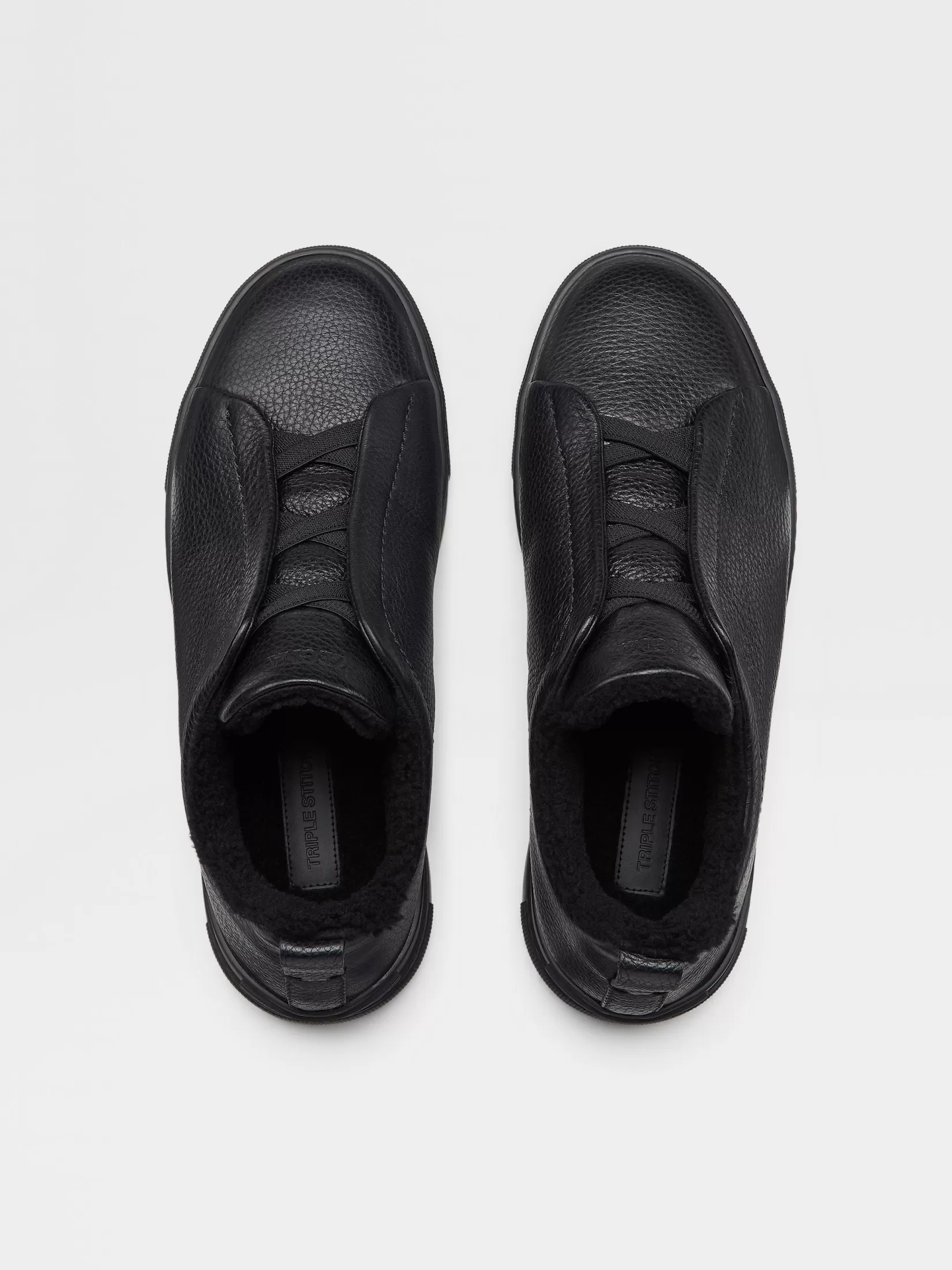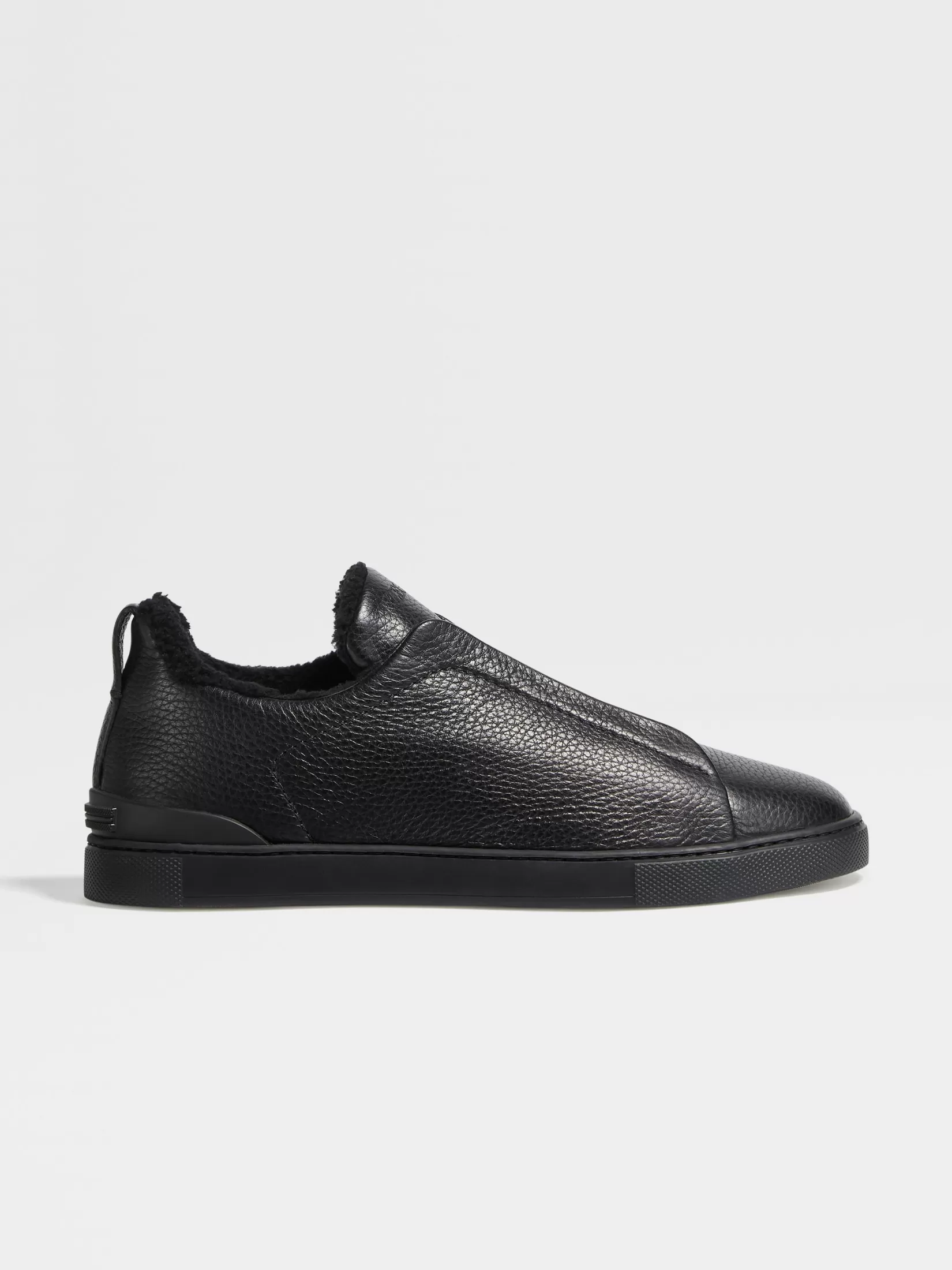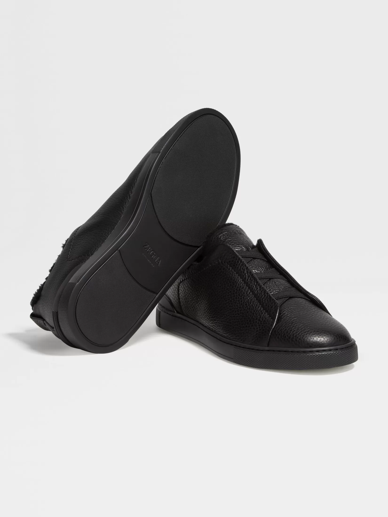 Las zapatillas bajas Triple Stitch™, en piel de ciervo color negro, dan un toque sofisticado al calzado informal. El detalle de la marca, las tres cruces elásticas, evoca el pespunteado a mano de nuestras chaquetas sartoriales. Su diseño ligero se complementa con una suela de goma a juego.