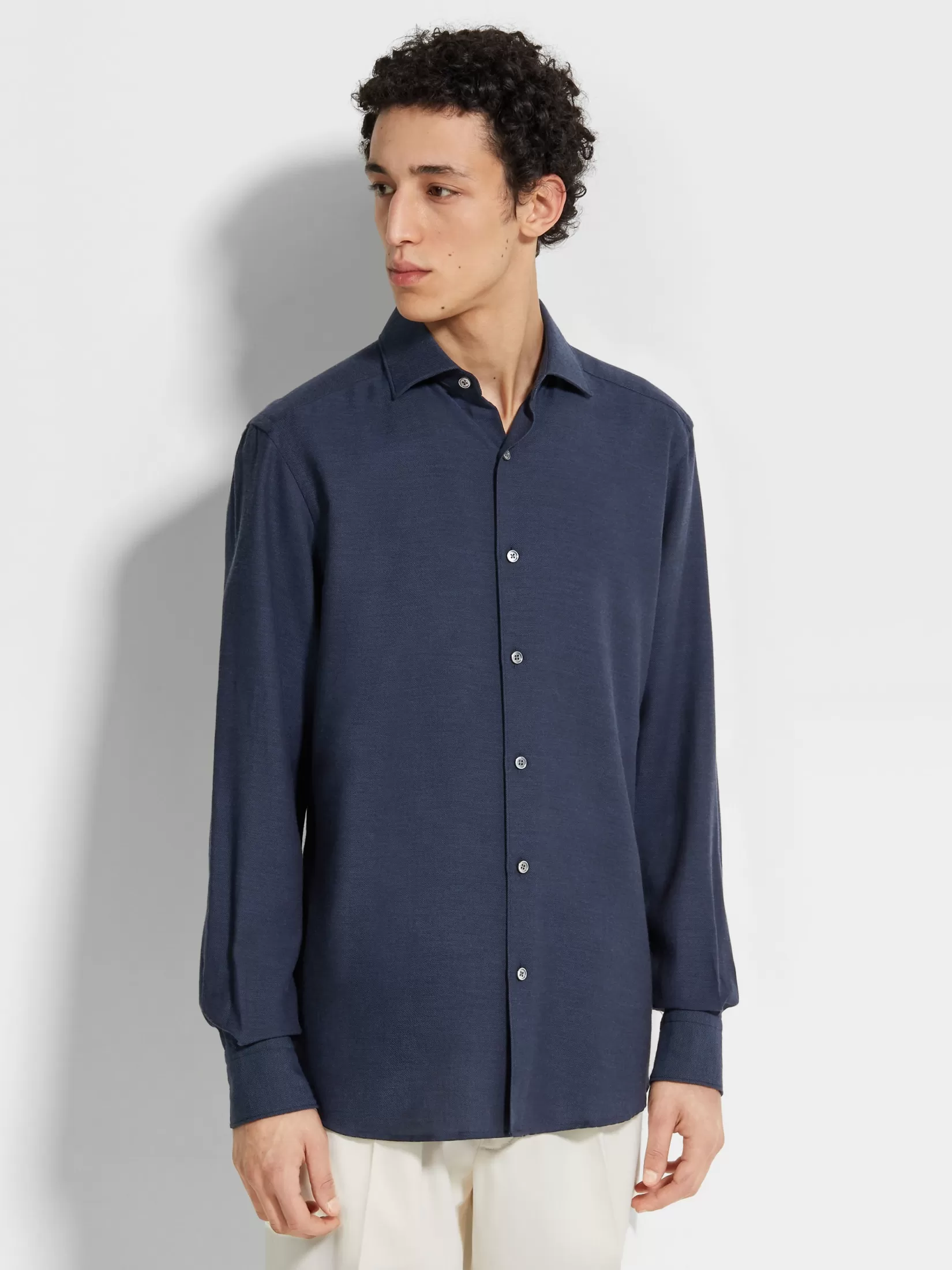 Esta camisa en Cashco, azul marino, está confeccionada con uno de los hilos más finos de Zegna. Esta elegante camisa de manga larga es perfecta para llevar a diario, y está acabada con cuello inglés y puños regulares.