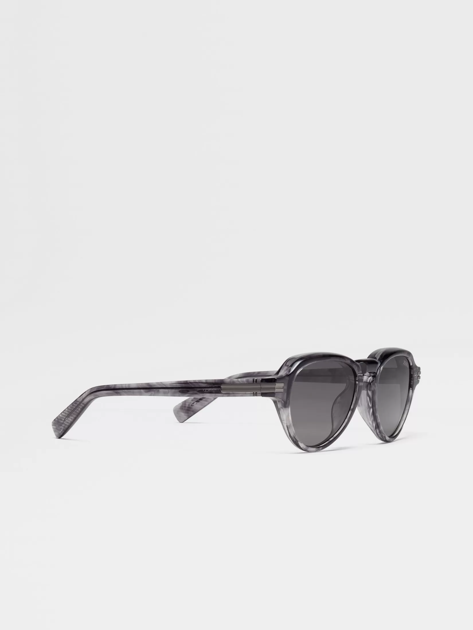 Un diseño atrevido con un acabado brillante: así se presentan las gafas de sol en acetato, gris habana transparente, caracterizadas por una montura con puente simple y volúmenes redondos prominentes. Las almohadillas adherentes en los terminales mejoran su ajuste y el asombroso logo Zegna 232 Road Brand Mark adorna las esquinas. Las formas geométricas y su distinguido biselado brindan un estilo espectacular que transforma estas gafas de sol en un accesorio estiloso y de tendencia.