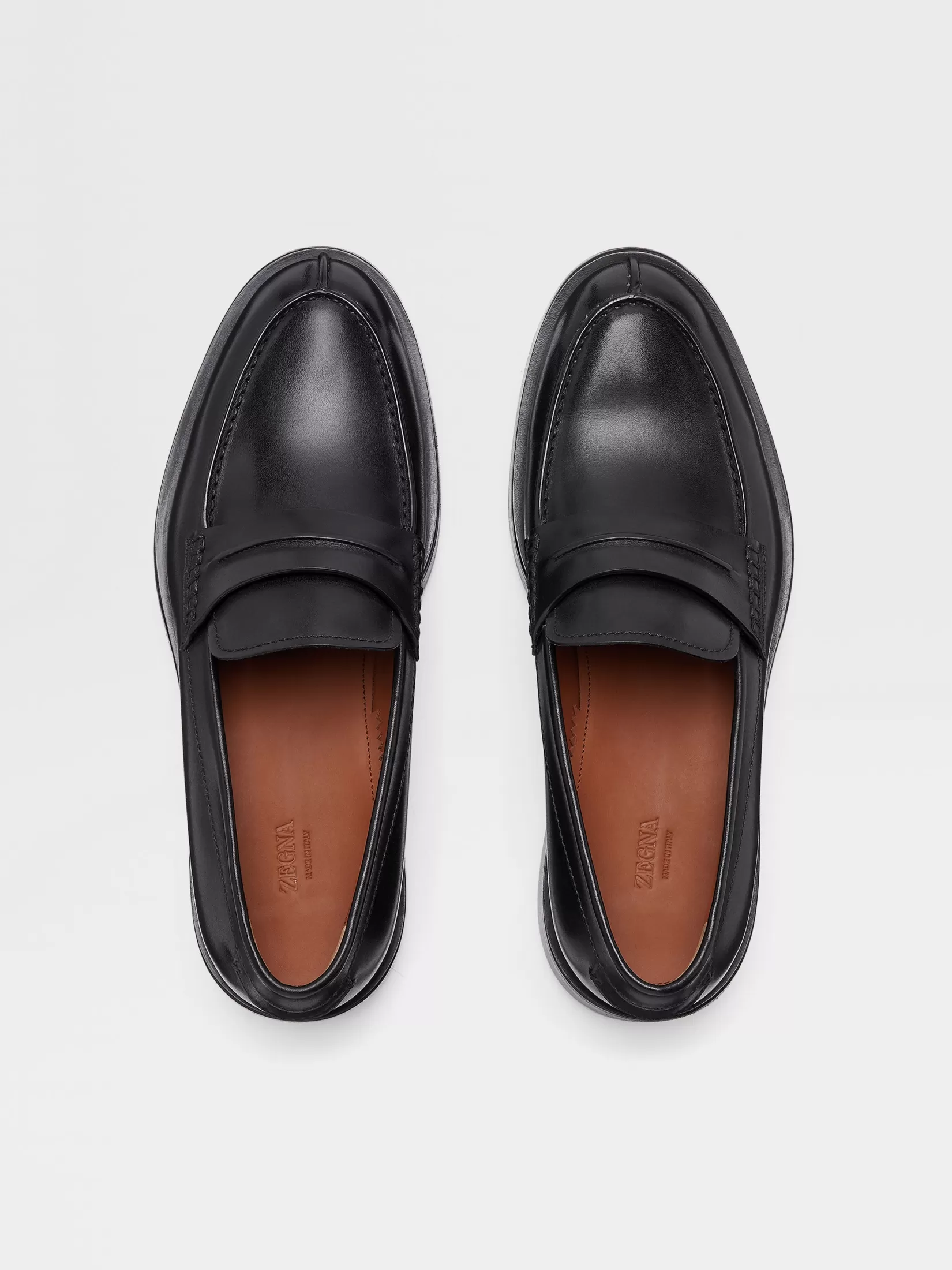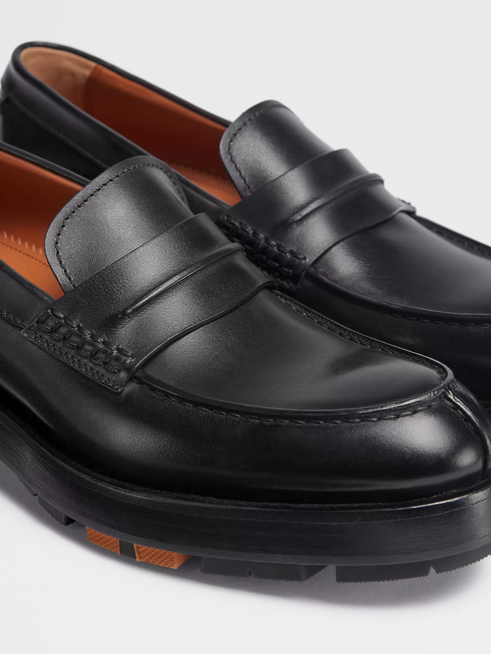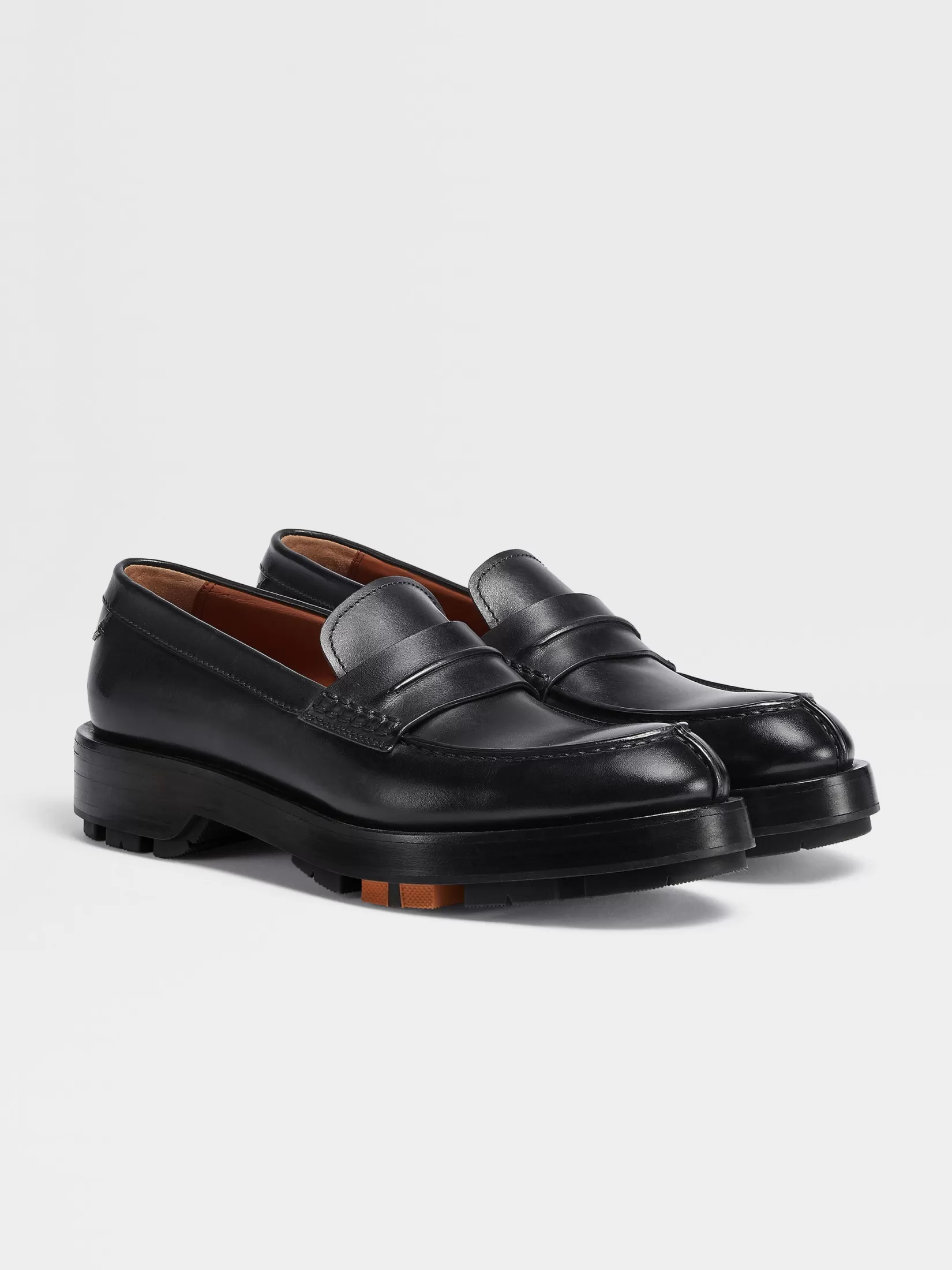 Los mocasines Udine negros, con su puntera redondeada y contemporánea, están confeccionados en piel de becerro cepillada y es el complemento perfecto para los armarios más elegantes. La suela en relieve añade un toque fuerte a los trajes o pantalones formales, para una visión renovada de la ropa masculina elegante con espacio para la personalidad.