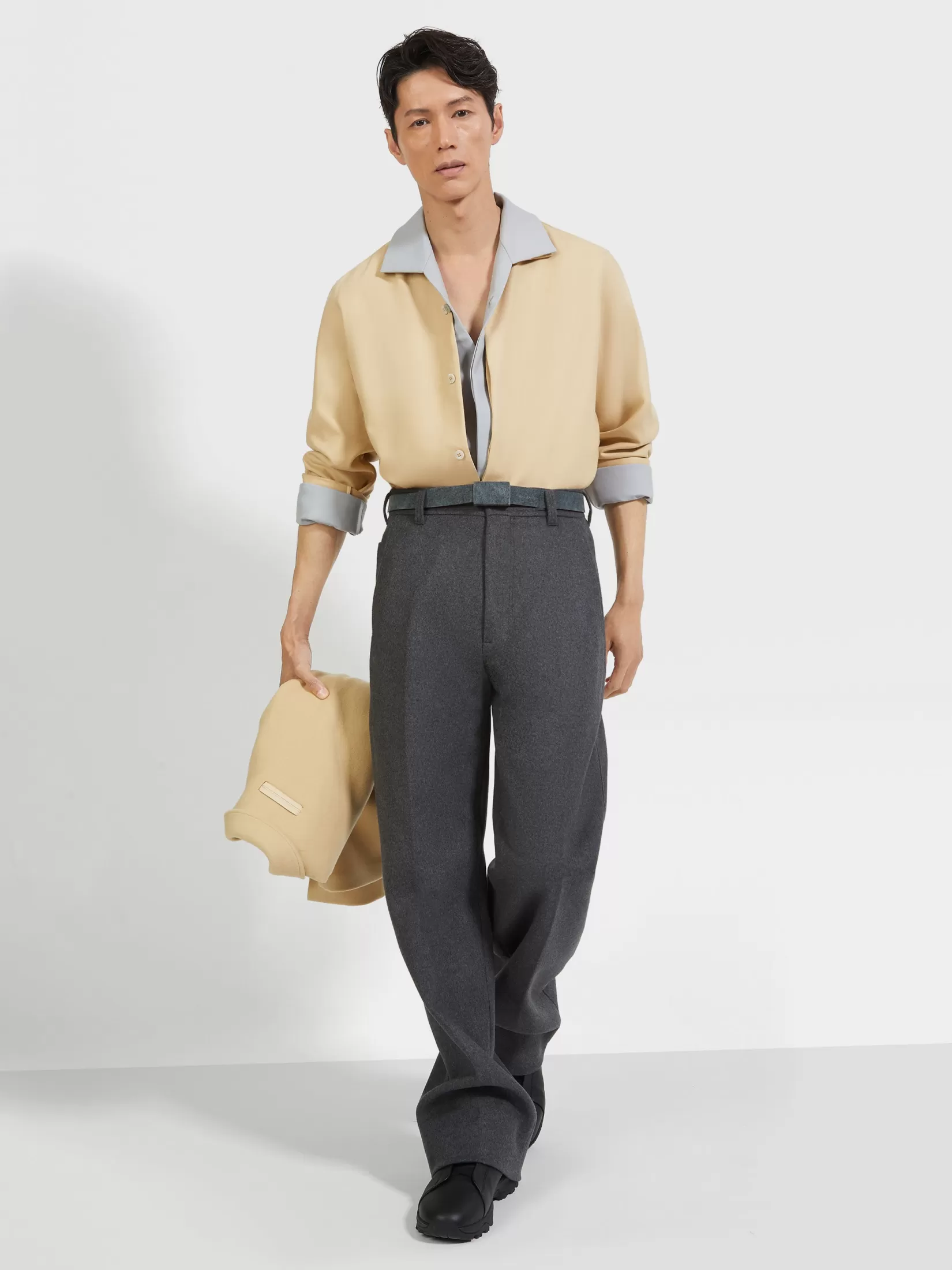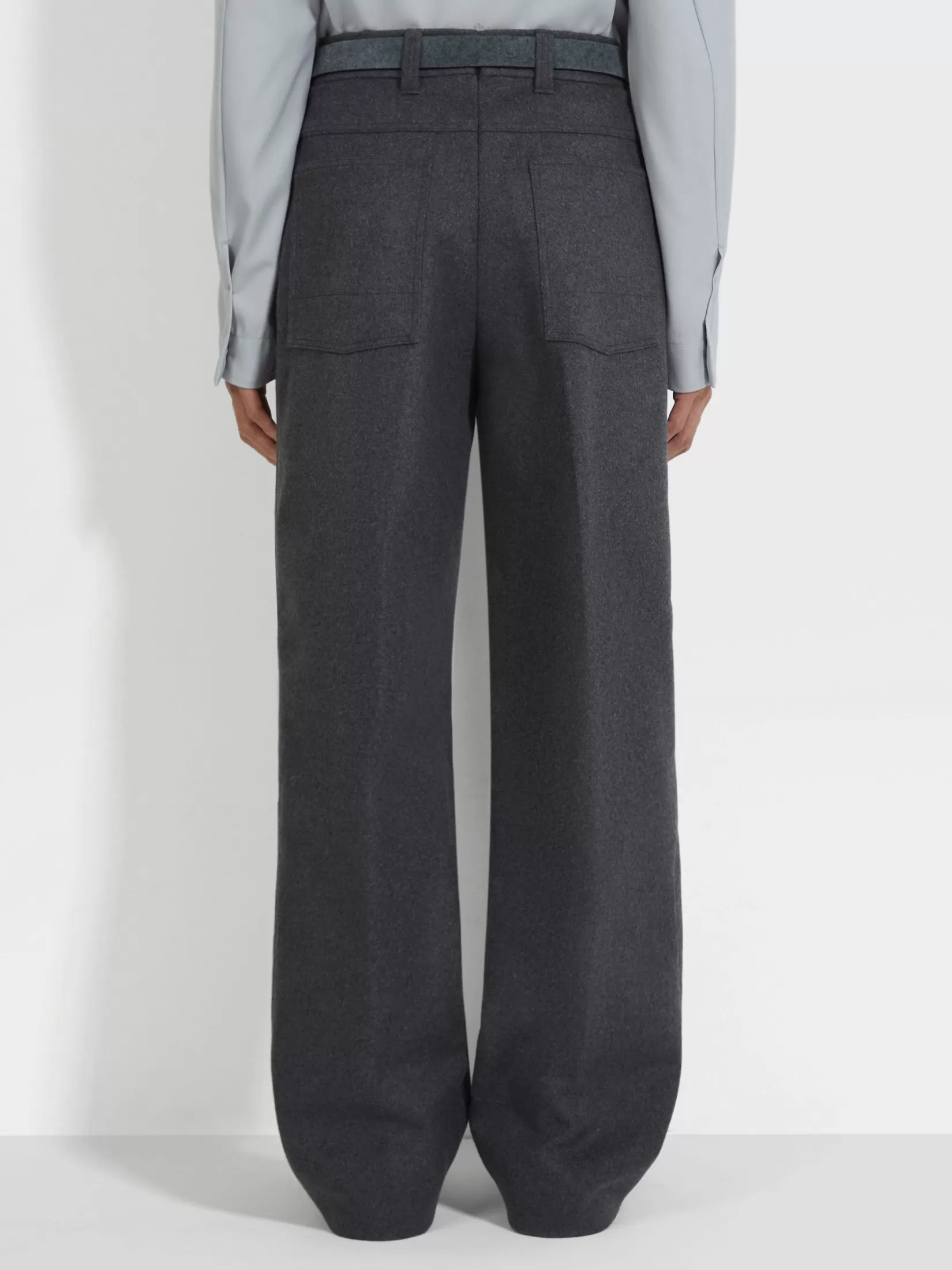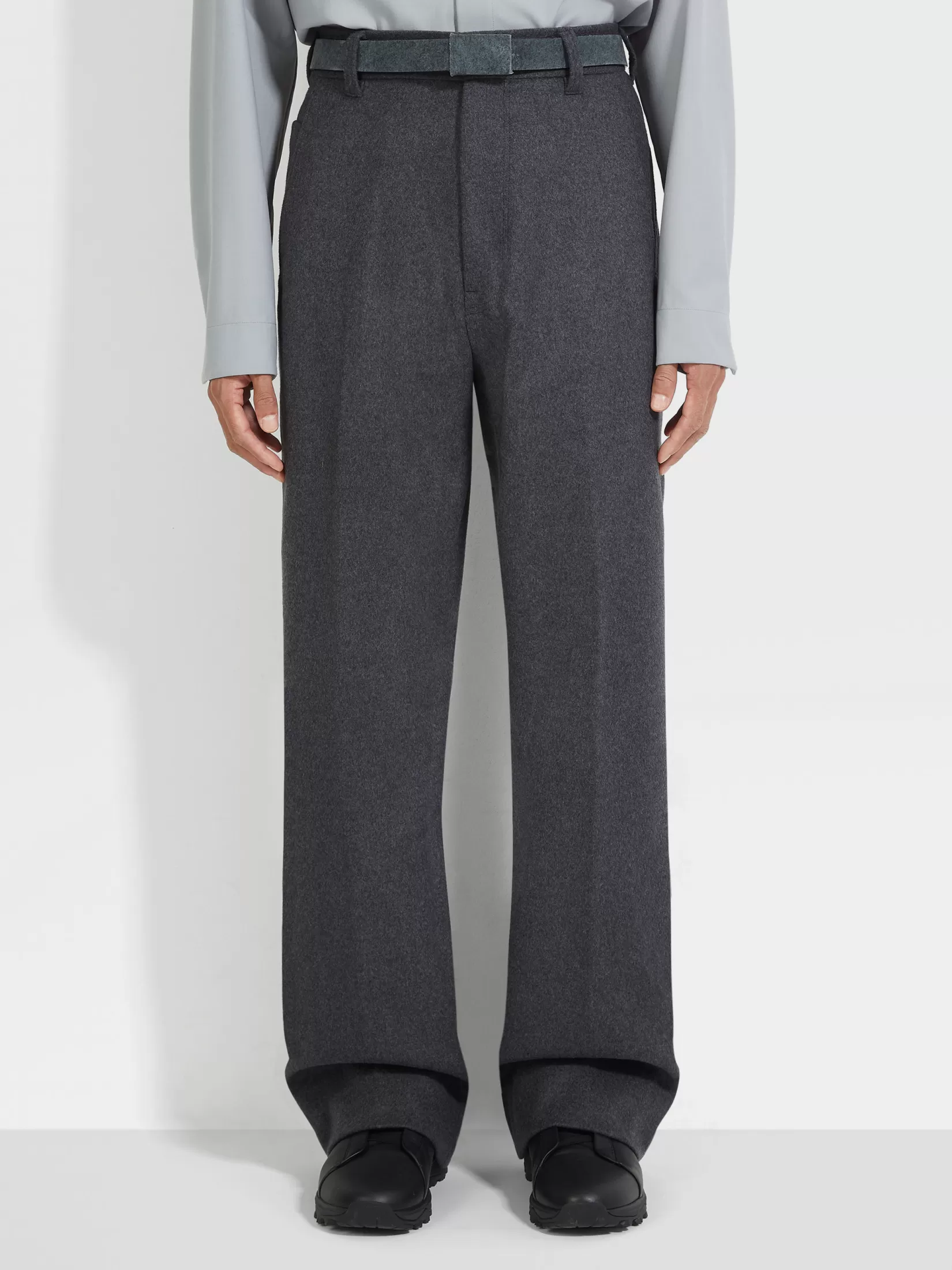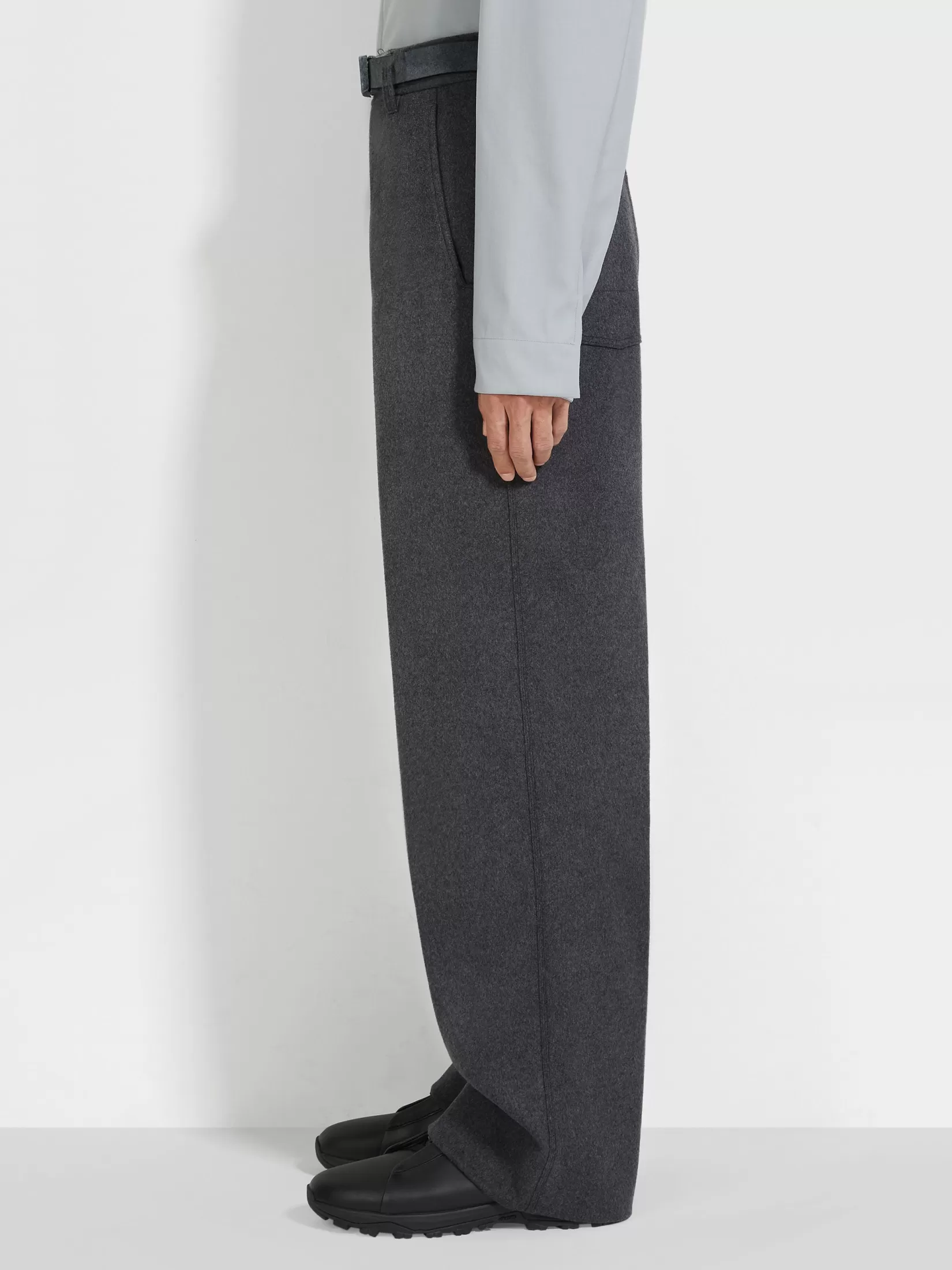 Presentados en el desfile de Zegna, estos pantalones gris oscuro de lana y cachemira destacan por su clásico corte estándar. La adición de la lujosa cachemira realza su clásico color y corte. Se presentan semiforrados y con bolsillos oblicuos en los lados.