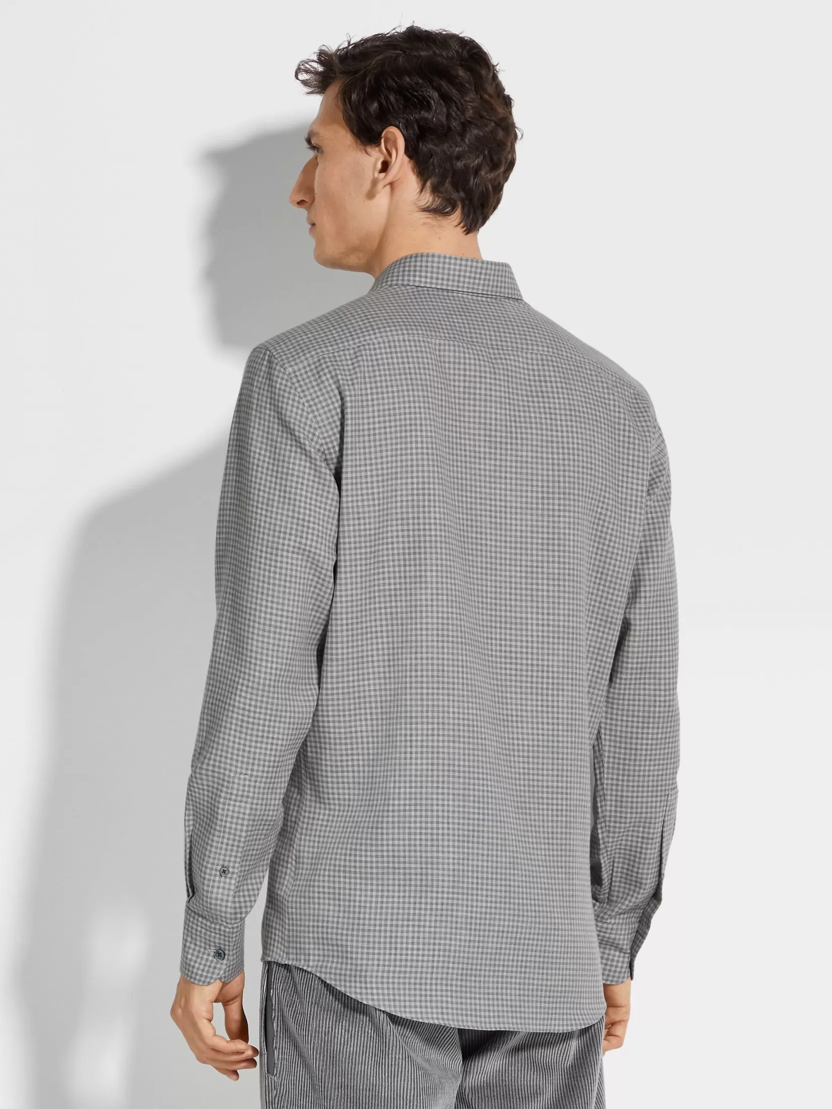 Esta camisa en Cashco, gris oscuro y azul marino con cuadros pequeños, está confeccionada con uno de los hilos más finos de Zegna. Destaca por el clásico patrón a cuadros pequeños en una elegante paleta de colores. Esta camisa de manga larga presenta cuello inglés y puños clásicos.