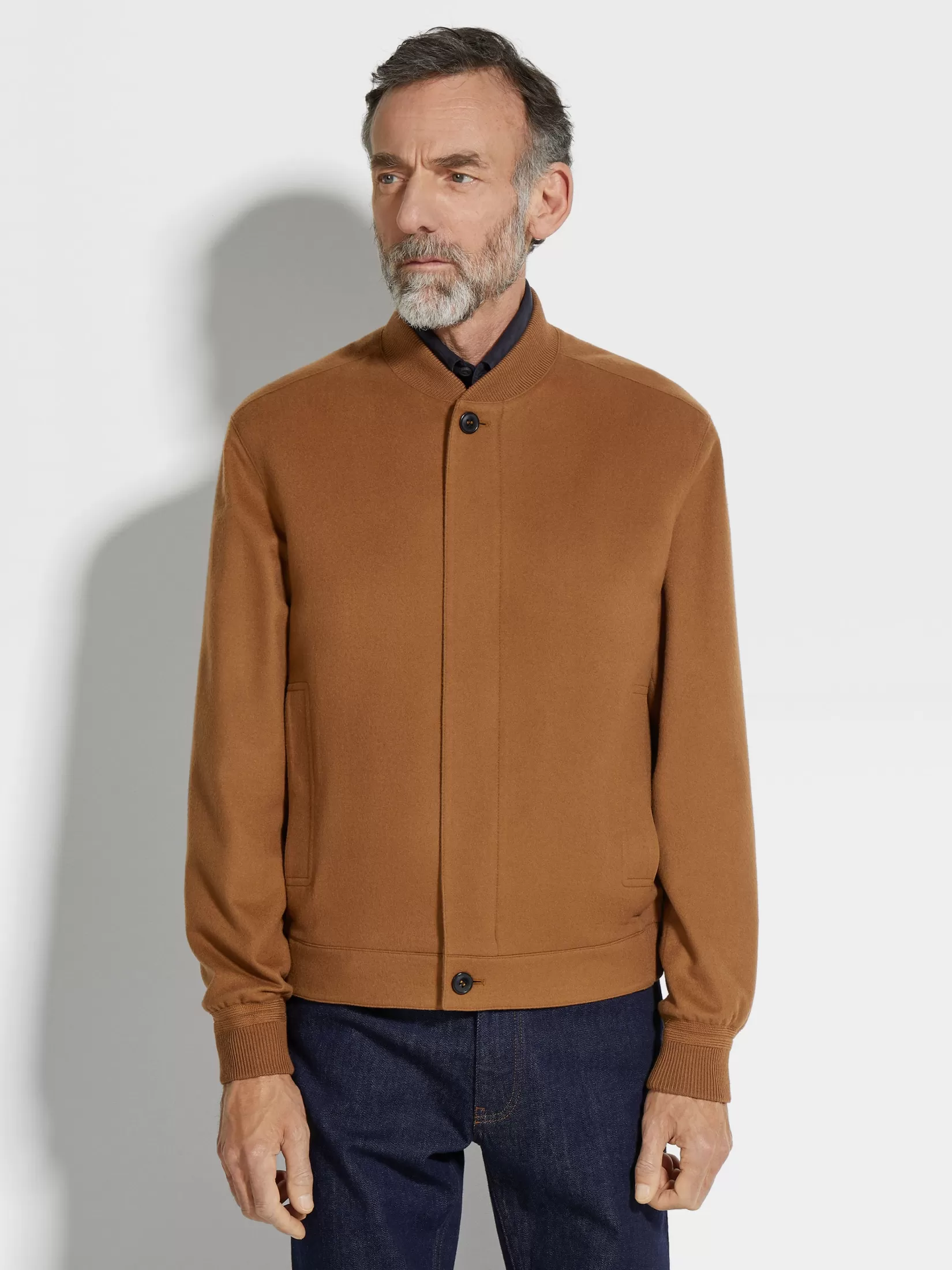 Esta chaqueta bómber en Foliage oscuro presenta una ligera capa de fieltro y un acabado en relieve gracias a la cachemira extrafina Oasi Cashmere Elements, exclusiva de Zegna. La chaqueta tiene una membrana impermeable que preserva sus cualidades a la vez que le protege mejor. Su diseño deportivo está acabado con un cuello tipo bómber acanalado y los puños a juego.