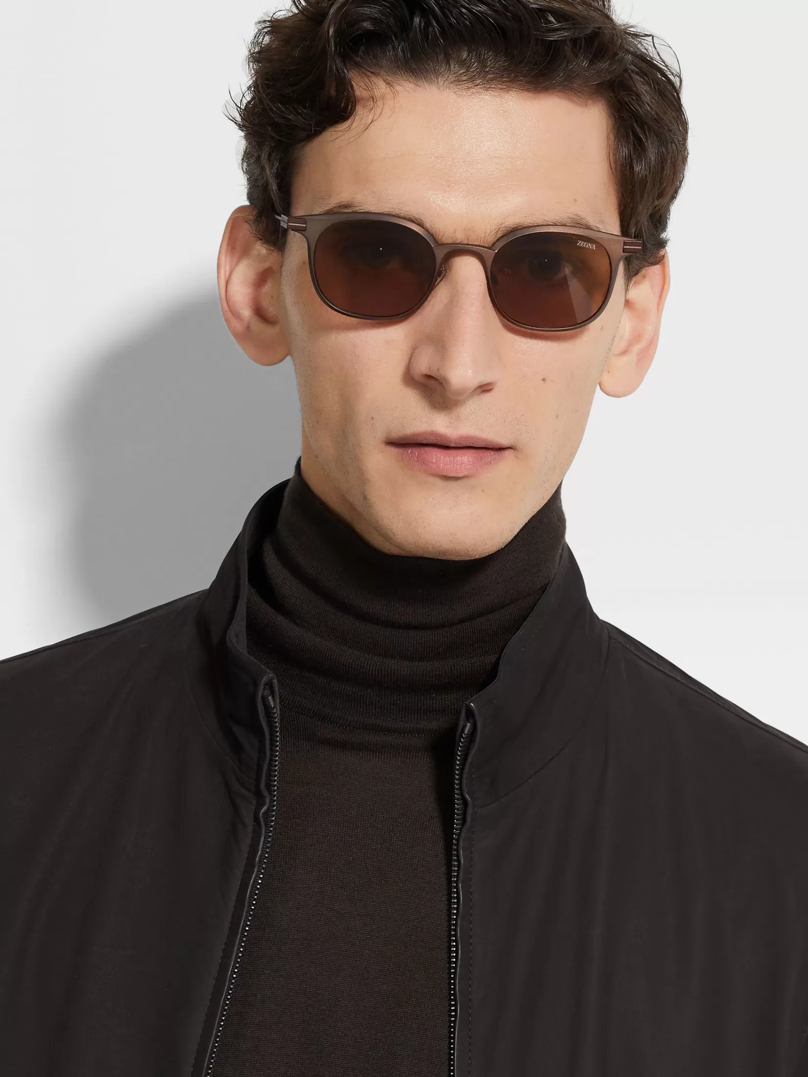 Las gafas de sol en aluminio bronce oscuro se caracterizan por su diseño angular y atrevido que combina un estilo moderno con materiales de alta calidad. Esta montura está realizada en aluminio ligero y resistente, caracterizado por el acabado pulido que refleja la luz. El ajuste es muy cómodo gracias a las almohadillas nasales de Zegna y a las de los terminales. Estas gafas de sol destacan por el logo Zegna 232 Road Brand Mark en los terminales y están pensadas para quienes buscan un estilo esbelto.