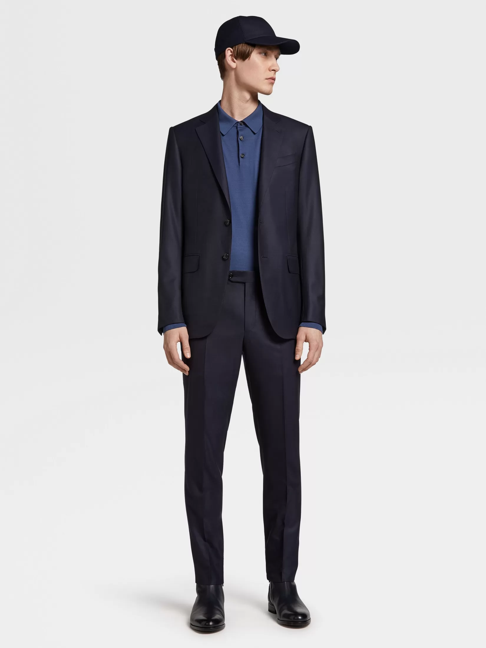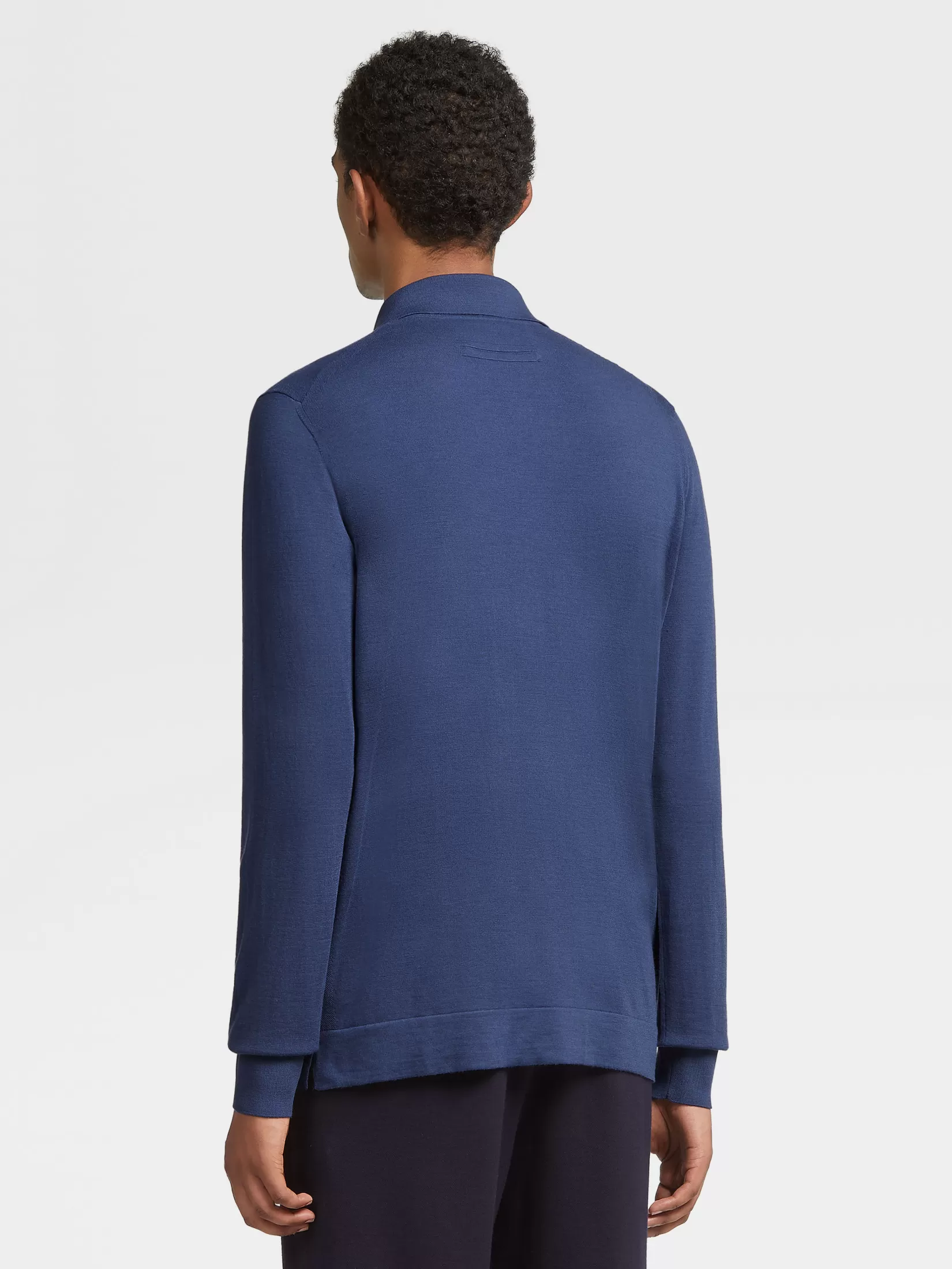 La lana 12milmil12, producida en cantidades limitadas cada año, regala a este polo de manga larga en azul claro un acabado excepcionalmente suave y ligero. El clásico canalé en el cuello de polo y en los puños acaban su lujosa confección, mientras que el corte entallado crea unas líneas esbeltas y deportivas.